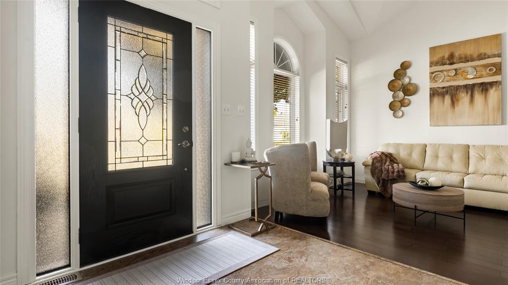 welcomes you with hardwood and ceramic through-out main floor, including living room, formal dining and
