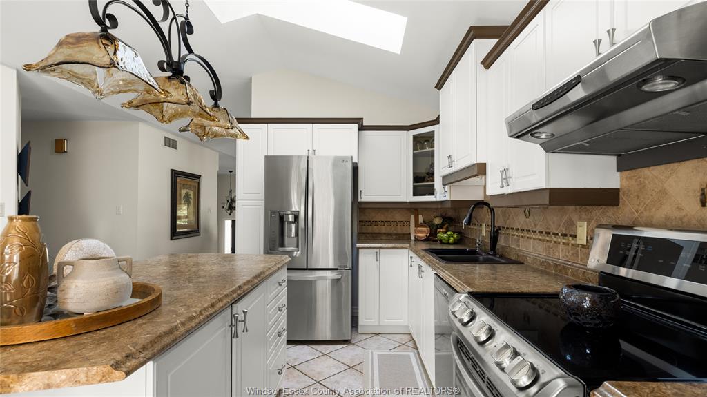 updated kitchen with cathedral ceilings, primary bedroom features walk-in closet and cheater door to