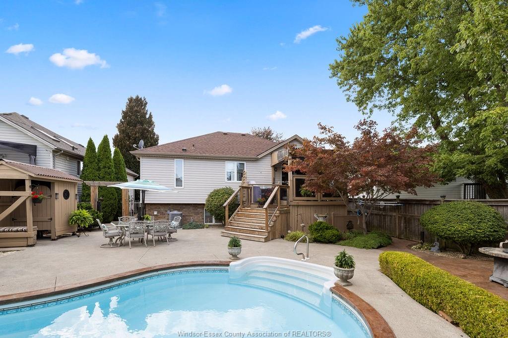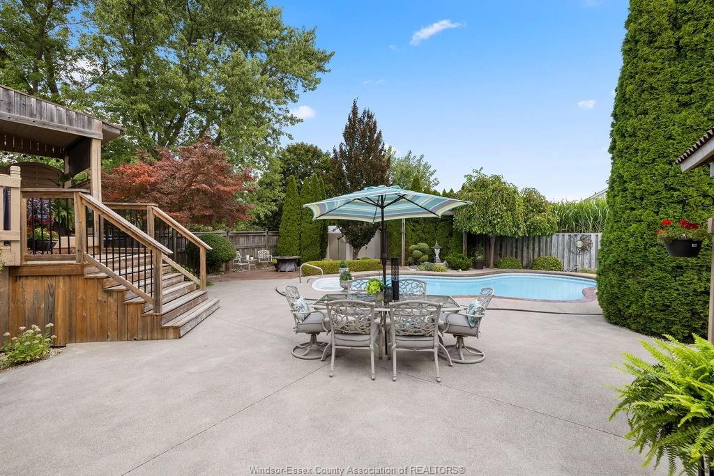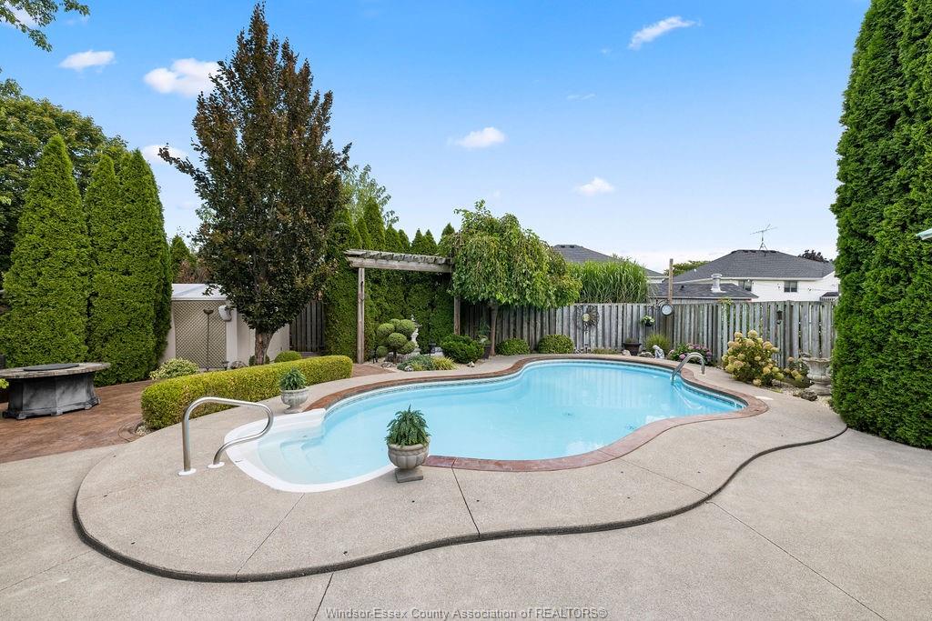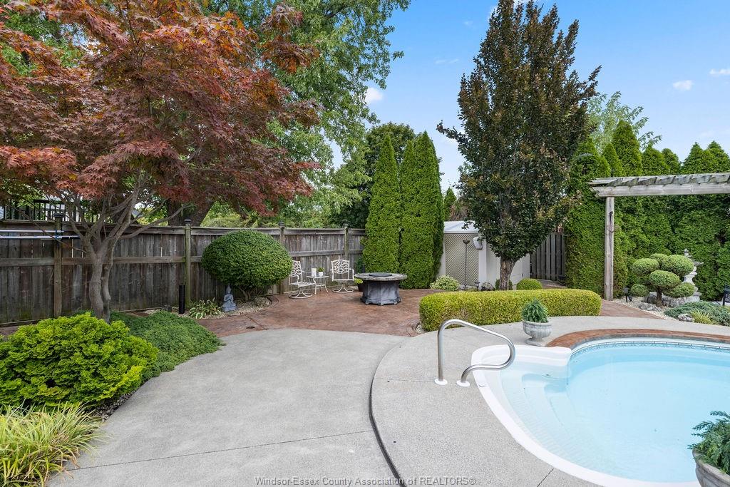 dream backyard with in-ground heated pool, private BBQ lounge area, gas firepit patio, even a outdoor