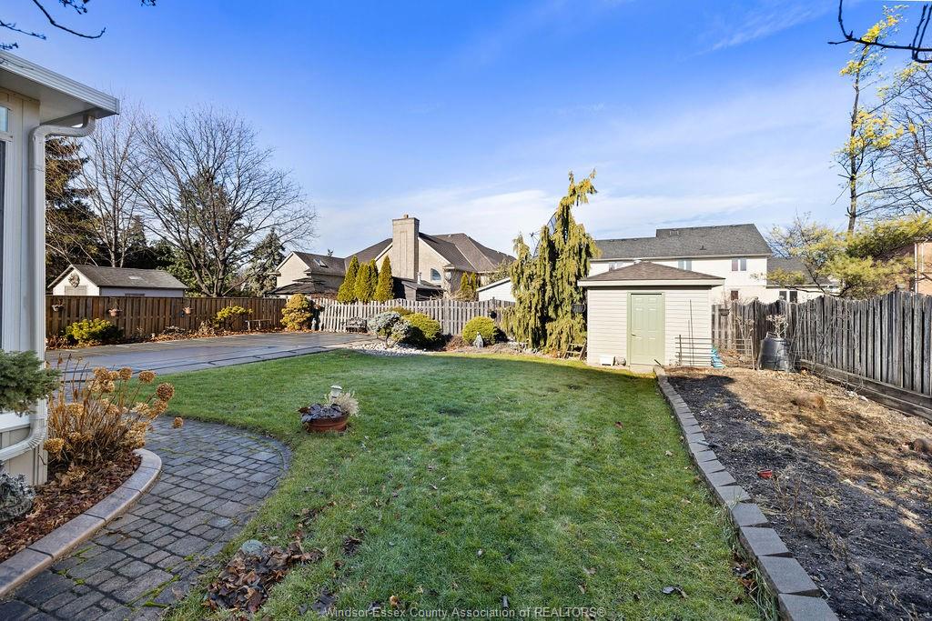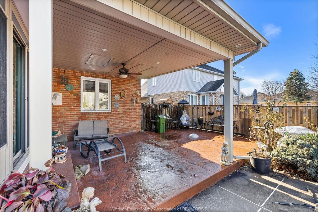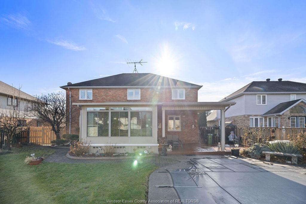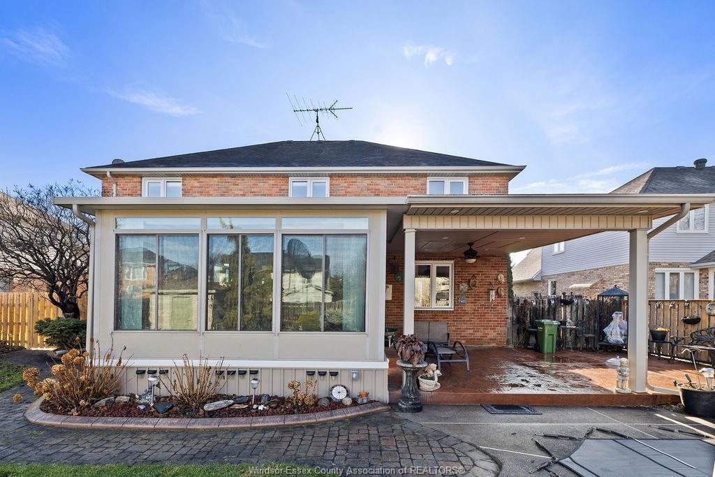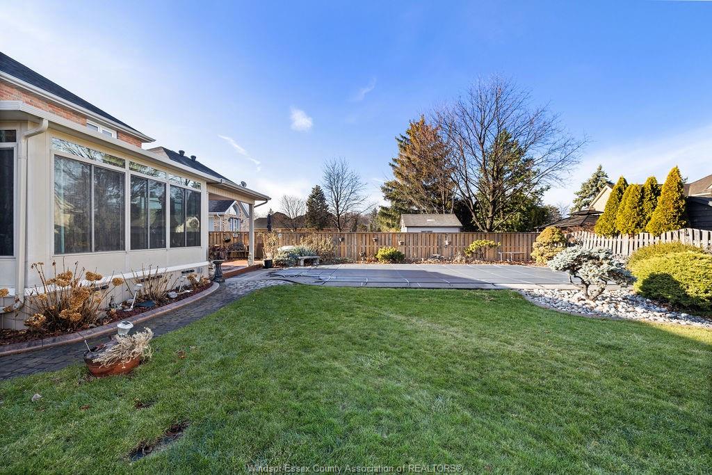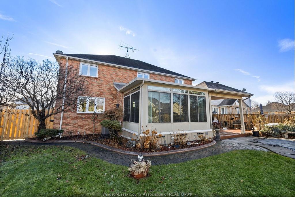 abundant storage. The private backyard boasts an enclosed 4 season room, covered porch, storage shed, stamped