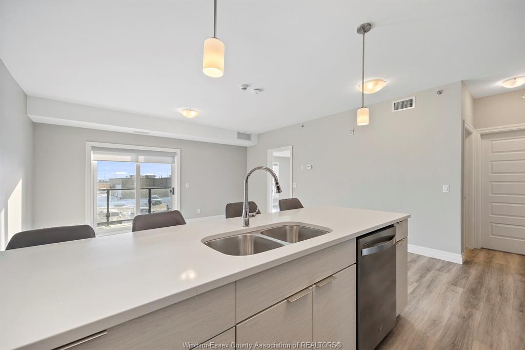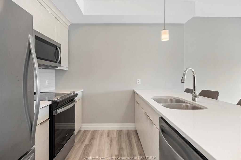 Welcome to Beachside-Lakeshore, Valente Development's luxury brand condos for sale in Essex County's most walkable location. Modern 6 story, 58 unit building. This one-bedroom, 1.5 bathroom suite gives residents the opportunity to live in a beautifully maintained building and active community featuring, pickle ball courts, pavilion, dog run and community garden. Suite features bright open-concept living, 9ft ceilings, gorgeous kitchens with crown molding, quartz counters, tile backsplash, stunning ensuite baths with Euro glass/tile showers, in-suite laundry, impressive stainless steel appliances, balcony and much more. Located in the perfect location where you can walk to shops, pharmacies, grocery stores, restaurants, LCBO, the beautiful waterfront at Lakewood Park, plus easy commuting with quick access to EC Row Expressway and the 401.