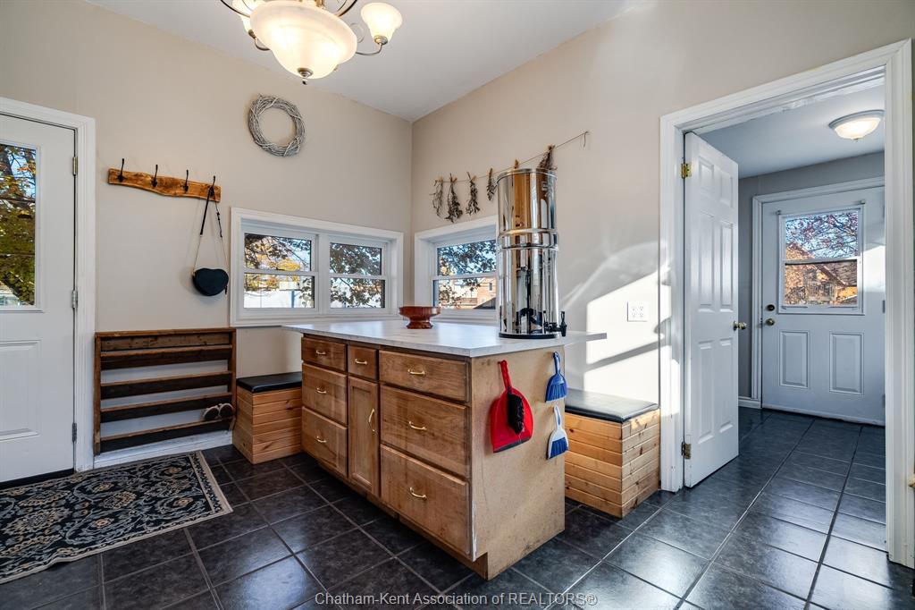 Stove, microwave range-hood combo, dishwasher, freezer in laundry room, wood swing set, chicken coop, built-in benches, island table in kitchen, pond equipment Driveway
