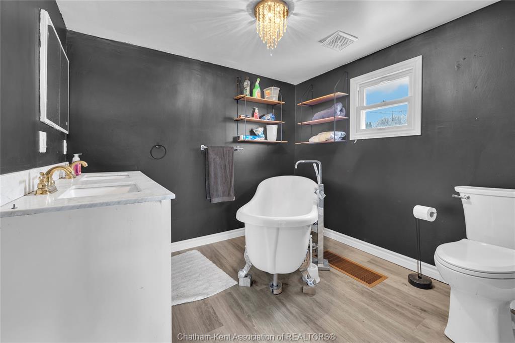 Looking for a 4 bedroom home? Look no further! Located on the outskirts of Tilbury, this home features 4 bedrooms, 2 bathrooms and a large eat in kitchen with updated cabinetry. This home has also had updated flooring throughout, and offers a spacious primary bedroom with a 3piece ensuite with free standing soaker tub – the perfect place to unwind after a long day! Enjoy the privacy of being located outside of town while you relax on the back deck. The detached garage is heated and offers plenty of space for the hobbyist or to store your toys. There is an additional loft on the garage with tons of storage space. Enjoy the conveniences of nearby town amenities, while still having the peaceful country feeling and easy access to the 401 for commuting convenience. Note: Dishwasher is not hooked up.