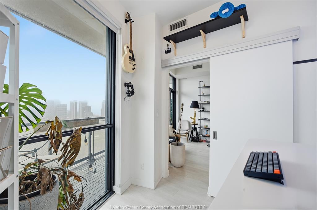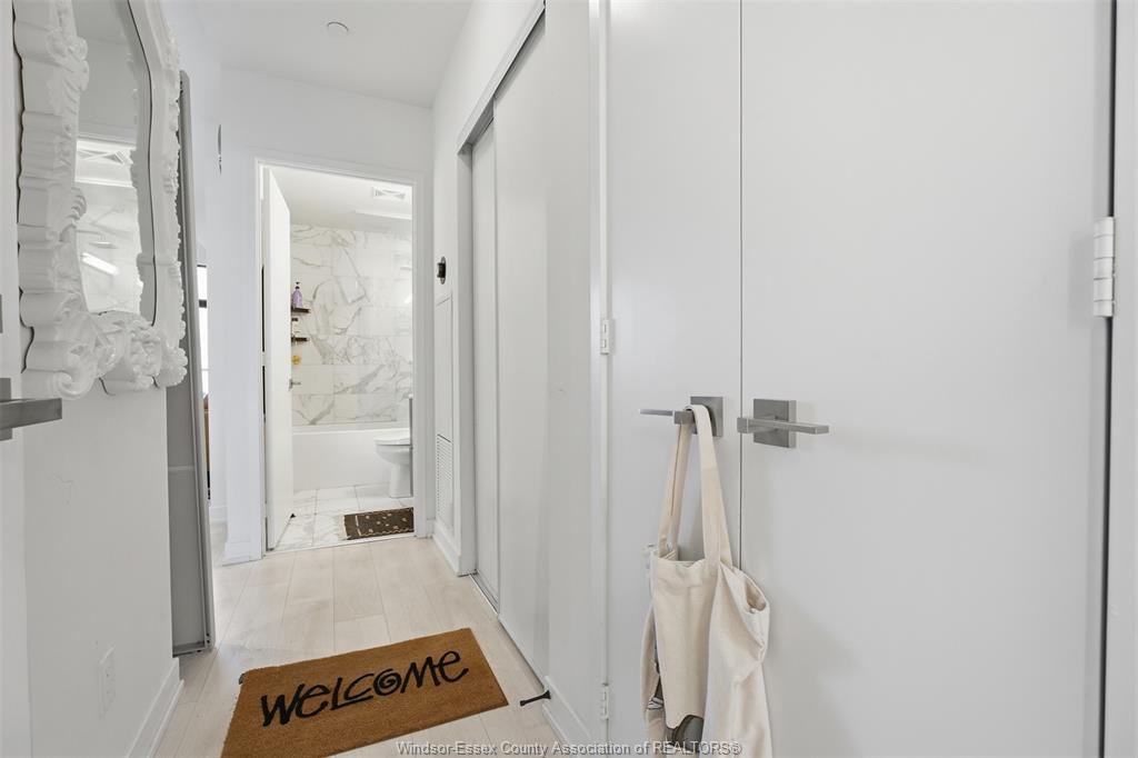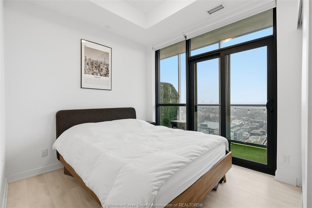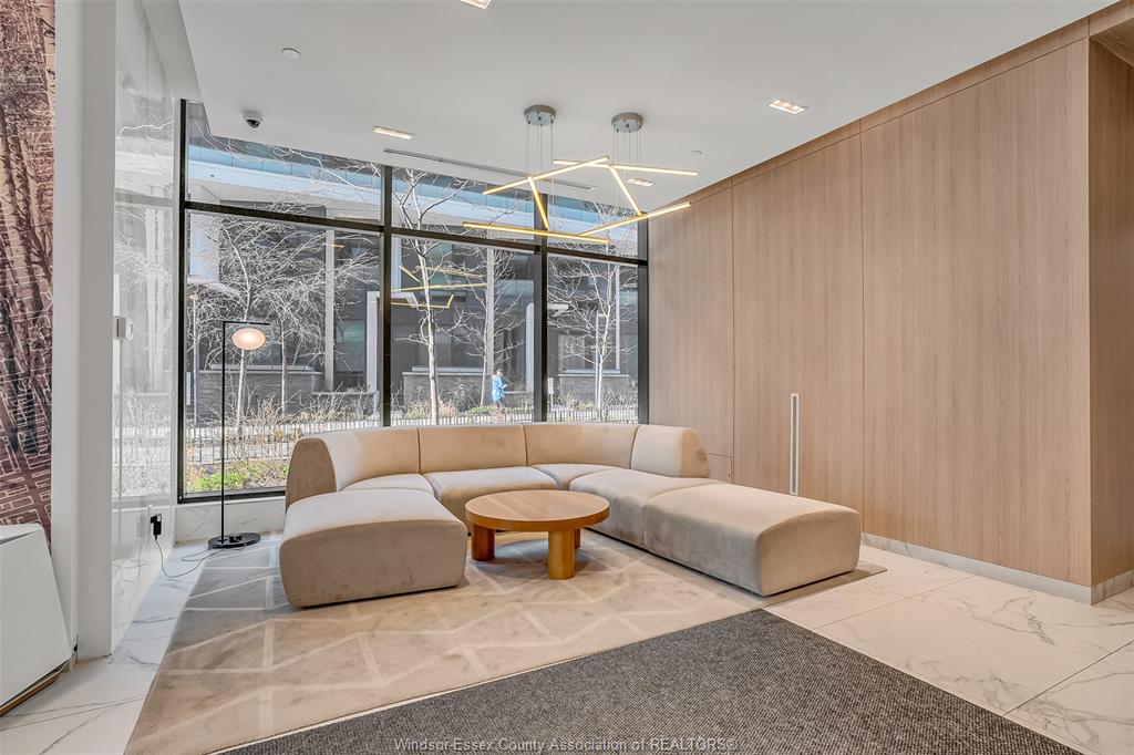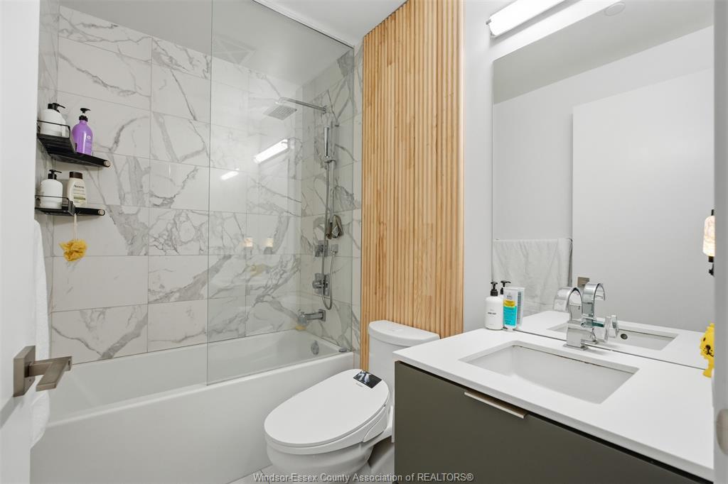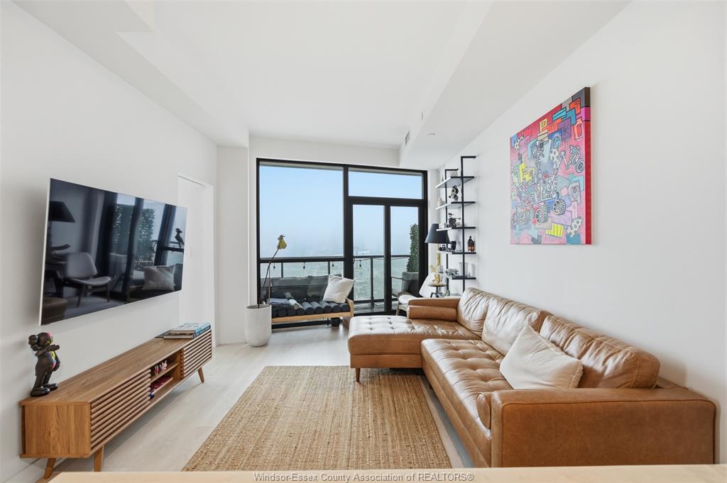 Inside, the suite features a sleek open-concept layout with a contemporary kitchen, quartz countertops, stainless steel appliances, and a functional island perfect for dining and entertaining. The living space is thoughtfully designed with clean finishes, wide-plank flooring, and an abundance of natural light throughout.