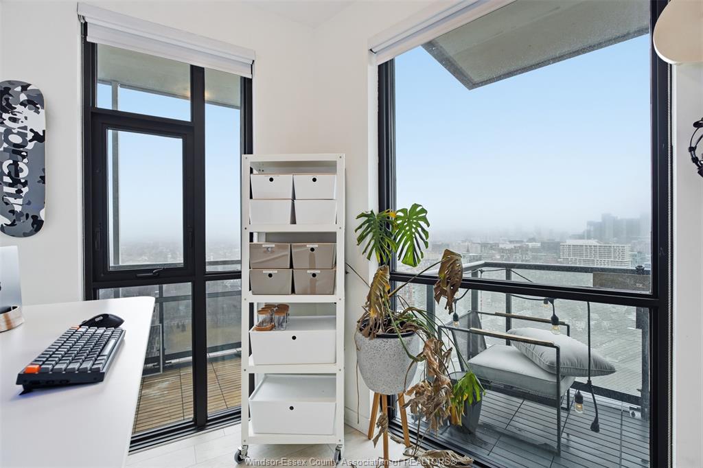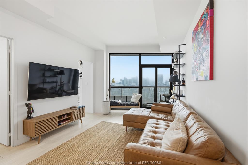 This bright and modern unit showcases floor-to-ceiling windows and two private balconies with north and south exposure, delivering stunning sunrise lake views and dramatic sunset cityscapes. The panoramic views stretch across downtown Toronto, offering a true “above the city” living experience.