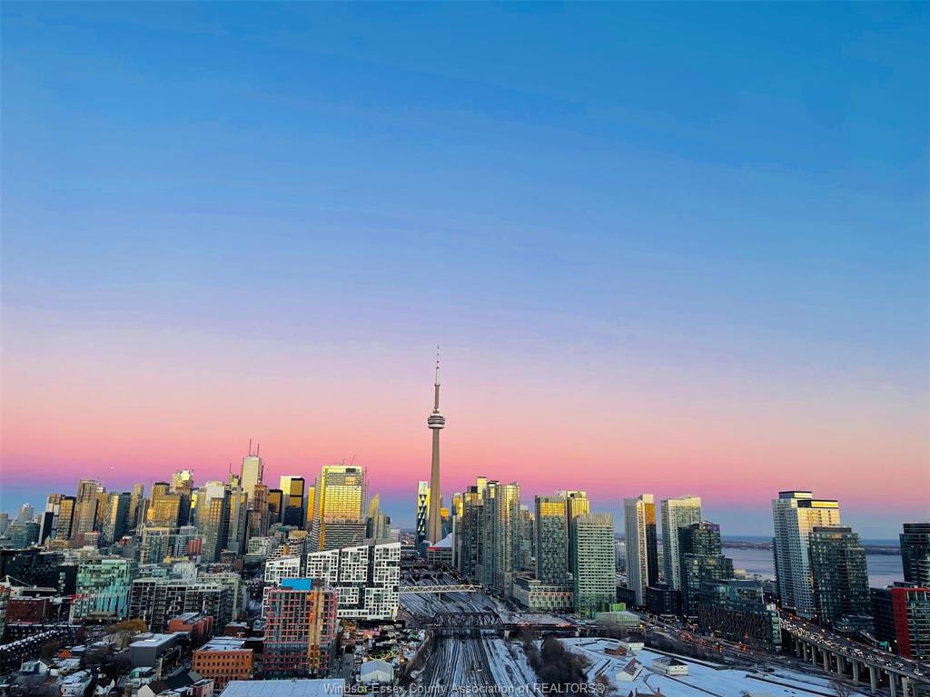 Rarely offered high-floor 2-bedroom corner suite at Garrison Point featuring breathtaking, unobstructed views of the CN Tower, Toronto skyline, and Lake Ontario.