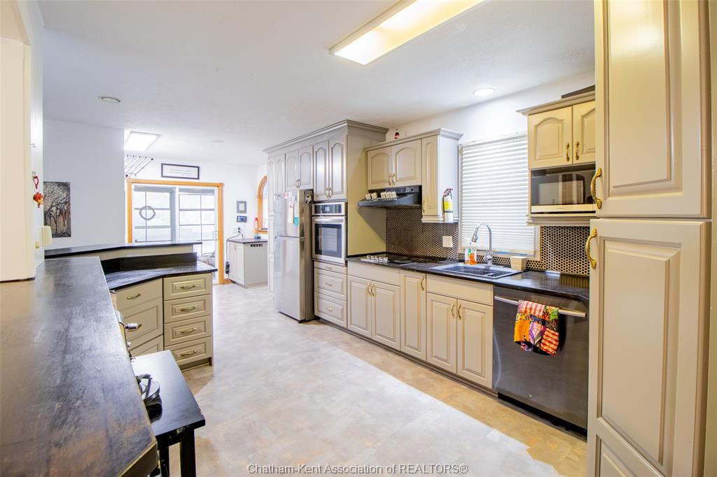 This large waterfront home sits along the Sydenham River and offers an impressive blend of space, functionality, and lifestyle flexibility for families, investors, or multi-generational living. With approximately 1,900 sq. ft. of finished living space, this large, never-ending home is designed to adapt to your needs—whether that means room for a growing family, creating a second suite, or exploring future Airbnb rental potential. Inside, you’ll find 5 well-sized bedrooms and 4 full bathrooms, including a dreamy primary retreat complete with its own private en suite. Enjoy a bright sunroom overlooking the water, perfect for morning coffee or evening unwinding, along with great accents like butcher block countertops and updated finishes. Outdoors, the property truly embraces waterfront living with direct access to the river, private docking perfect for fishing and boating, and an outdoor deck made for taking in sunrise coffee, evening dinners, or weekend gatherings. A convenient carport adds everyday practicality, and the home is within walking distance to local amenities, giving you both comfort and convenience. With its multifamily potential, waterfront setting, and more space than you could ever need, this property is truly a rare find that grows with you.