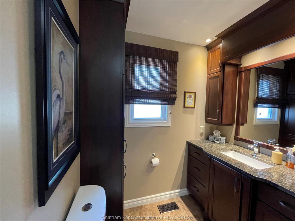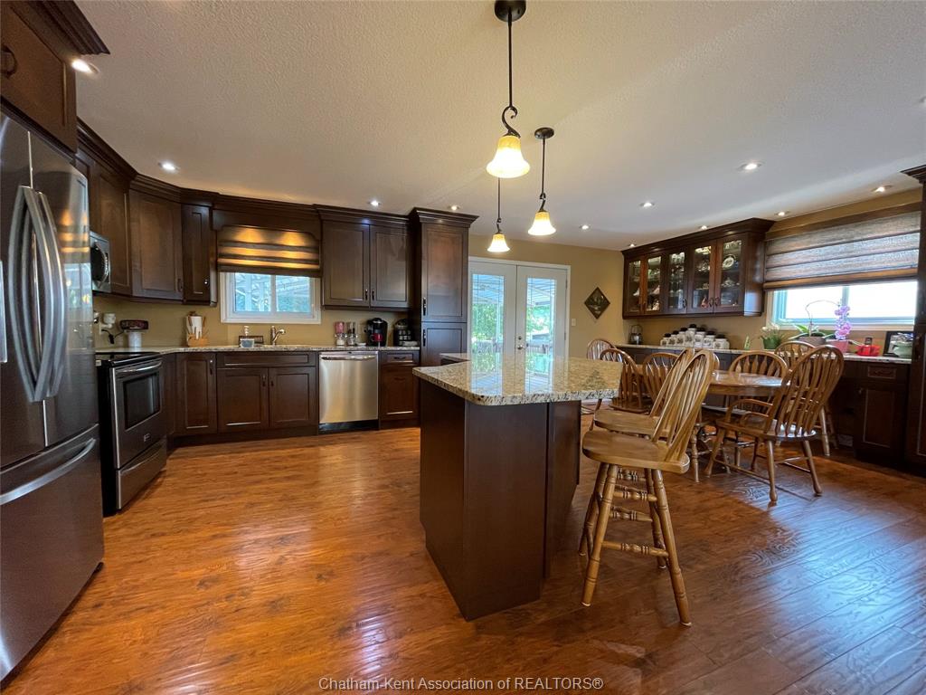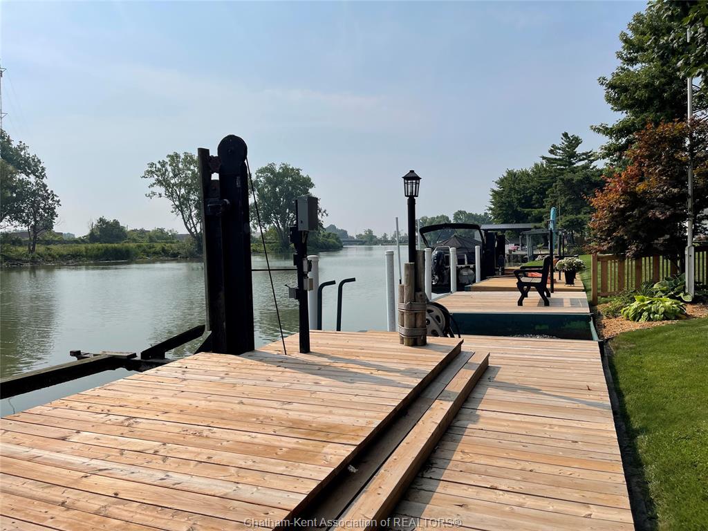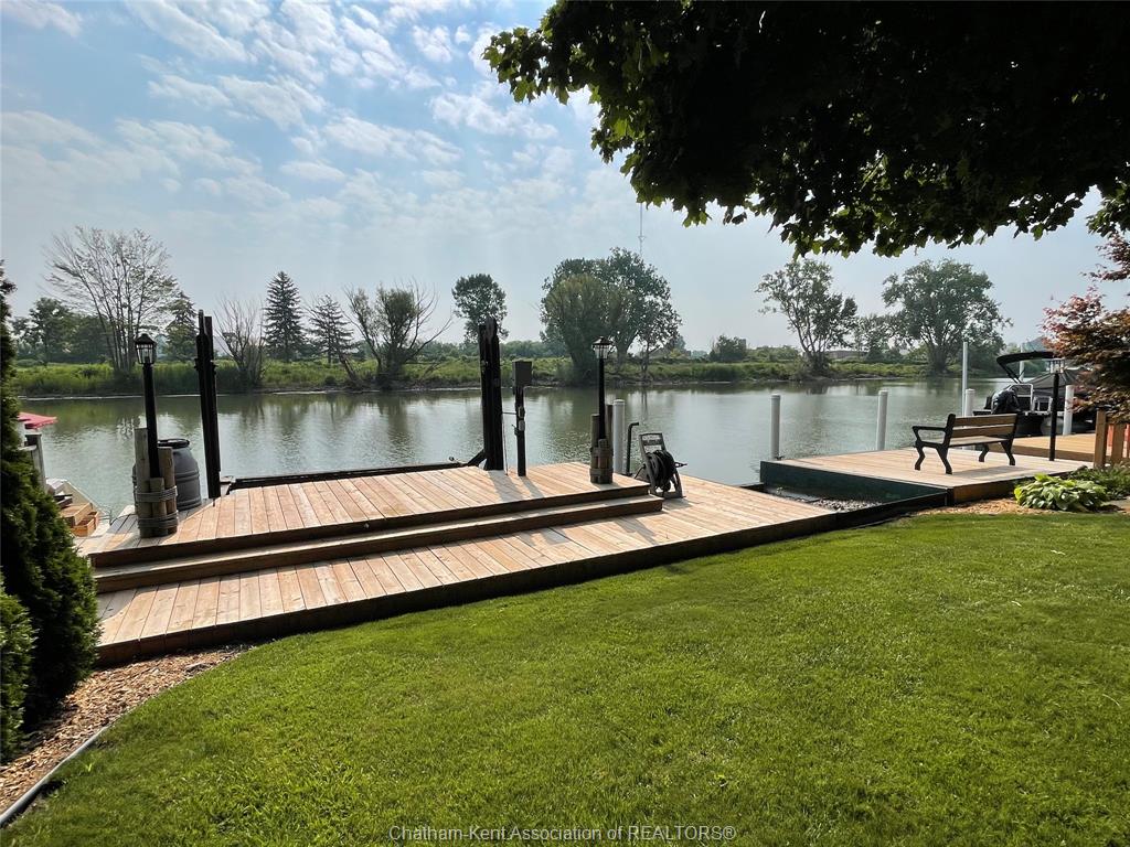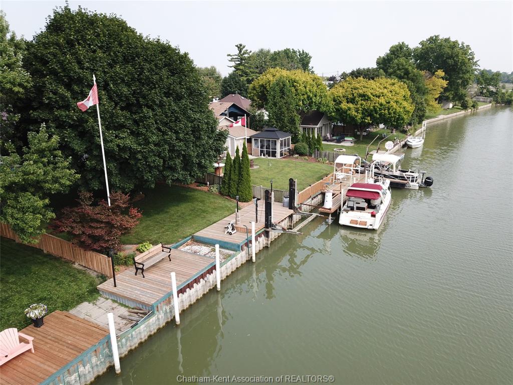 Welcome to this beautifully maintained raised ranch nestled along the Sydenham River offering the perfect blend of comfort, function and outdoor living. The main floor features a large living room, kitchen/dining combo with spacious cabinets, large island and granite countertops, 2 bedrooms, primary bedroom complete with custom built-ins, 4 pc bathroom, ample closets and storage throughout. The Lower level features a family/recreation room, 2 good size bedrooms, 3 pc bathroom, utility room and storage area. Lots of room to entertain inside or out, enjoy serene river views off the main floor, or relax on the back covered porch which leads to the refreshing pool and pond area nearby. The backyard is meticulously landscaped and complete with a boat lift and dock area to enjoy serene river views. There's a 17 x 13 garage/workshop and storage shed. This is a dream location for anglers and outdoor enthusiasts! Attention to detail and quality are evident in this home with plenty of updates over the years including, steel roof, windows, HVAC, insulation, irrigation system and more. A true pleasure to show.