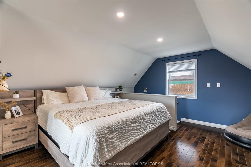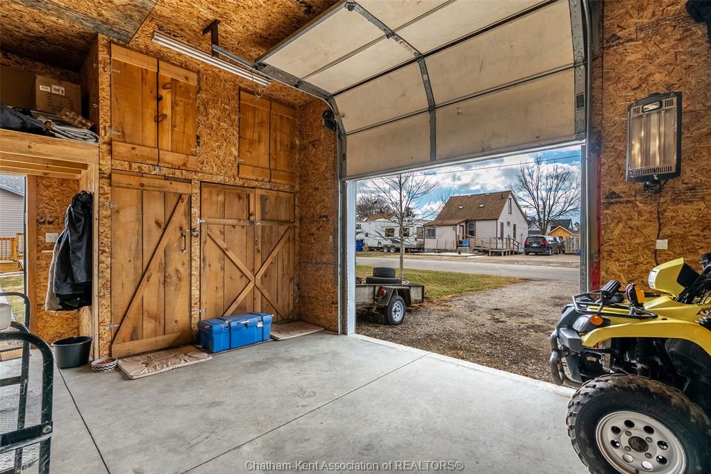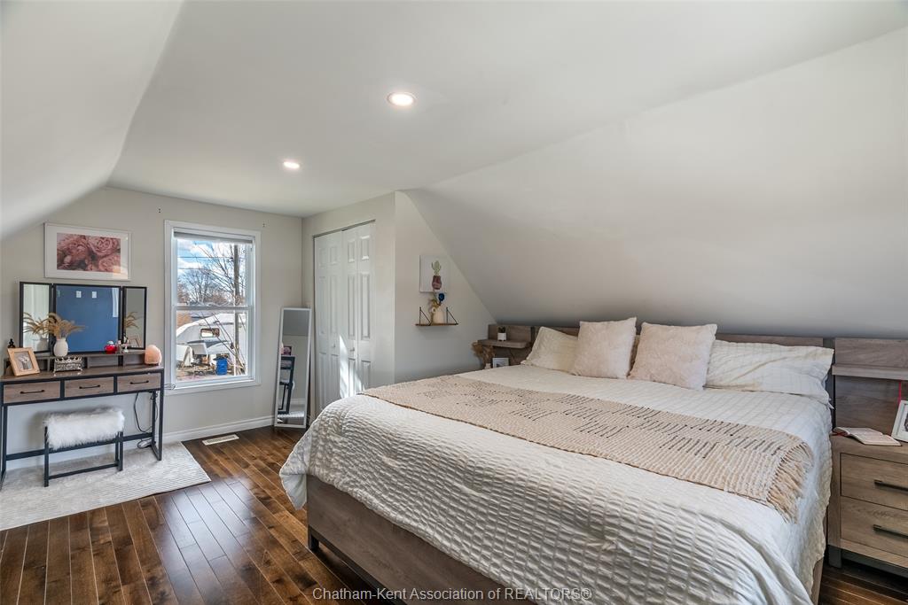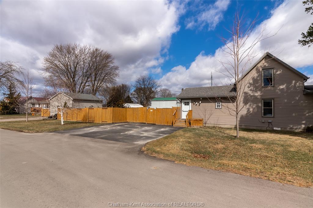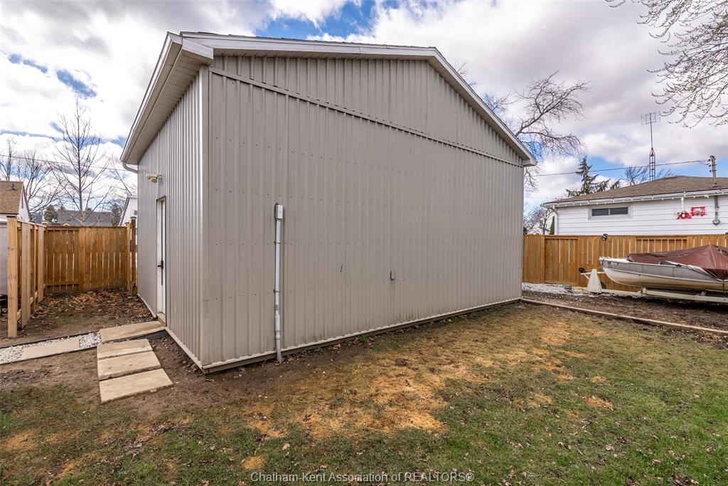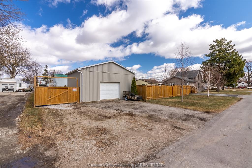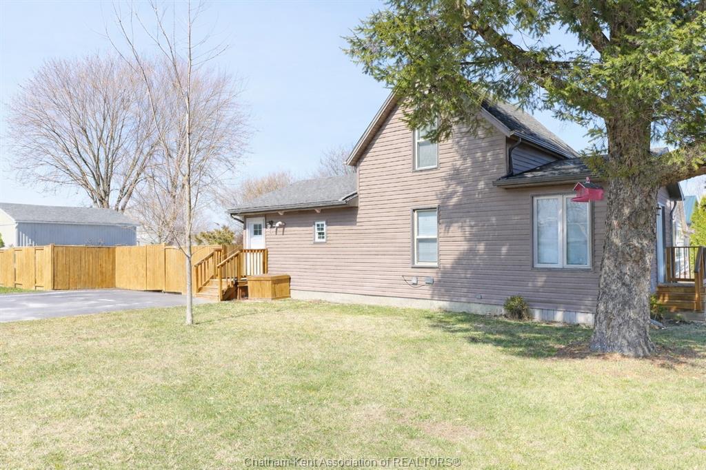 Charming 2 bedroom 1½ storey home situated on a corner lot in Wallaceburg, offering convenient main floor living and a functional layout. The front entrance leads into the bright galley kitchen with ample cupboard space and a breakfast bar, opening to a cozy dining nook perfect for everyday meals. The main floor also features a bedroom, 4-piece bathroom, and a laundry room with a convenient side entrance. The upper floor offers a cozy loft bedroom, adding additional living or sleeping space. A standout feature of this property is the impressive 20 x 24 ft detached garage—ideal for hobbyists, extra storage, a workshop, or secure parking. Plumbing and electrical have been updated within the past 12 years. The home is also equipped with an exterior furnace and A/C unit for efficient comfort. Enjoy the fenced backyard with a back deck, perfect for relaxing or entertaining. The side street is a quiet dead end, offering minimal traffic and added privacy. A great opportunity for first-time buyers, downsizers, or investors looking for a well-maintained home in a friendly community. Love Where You Live!