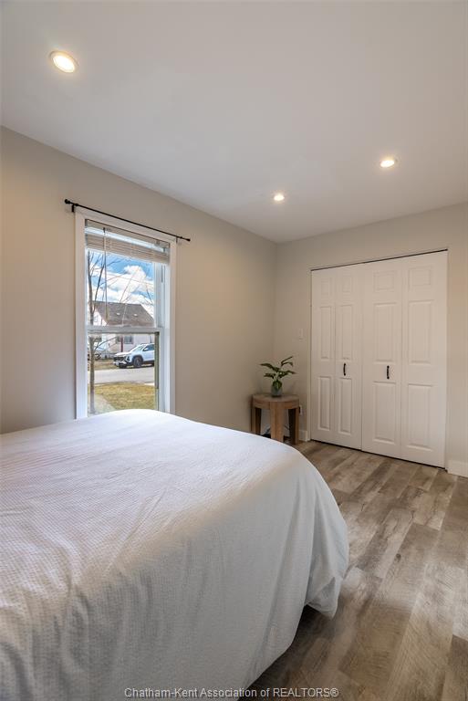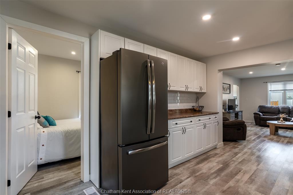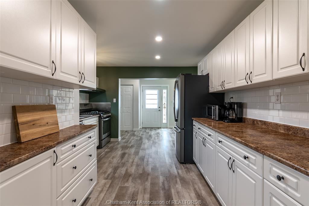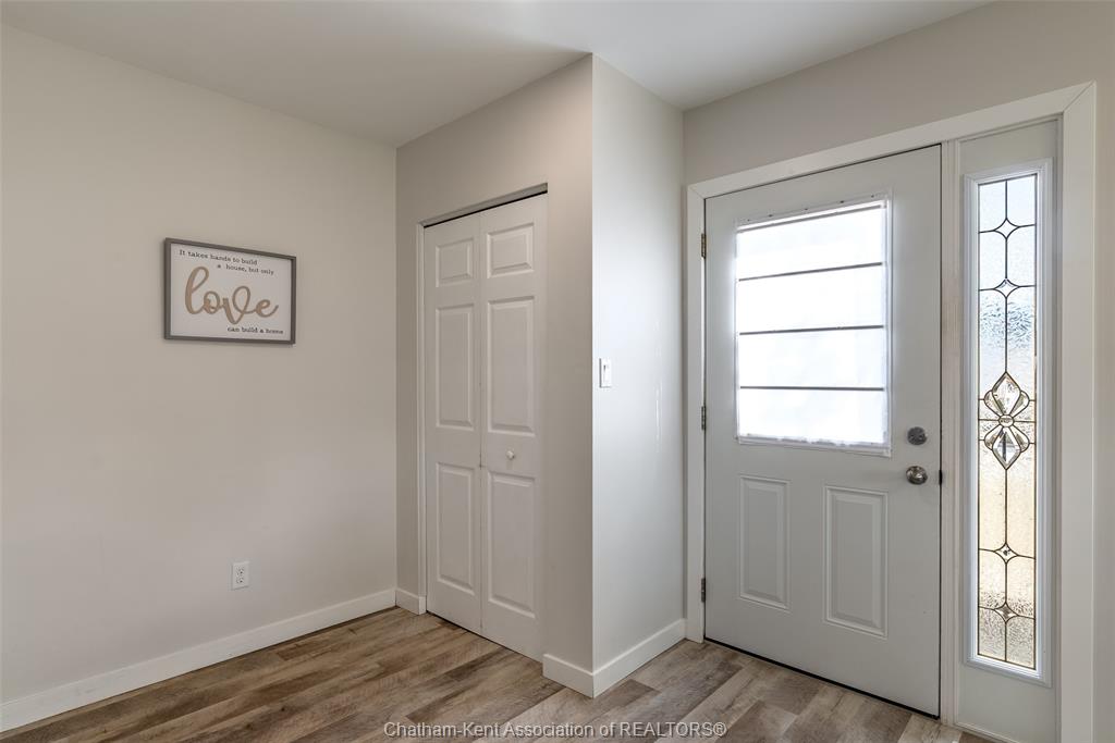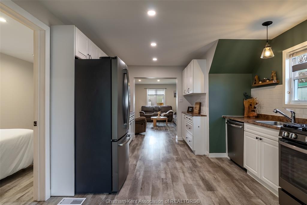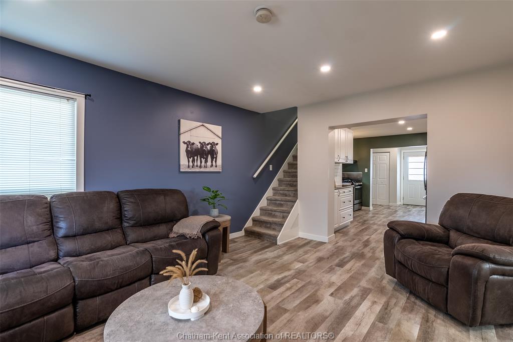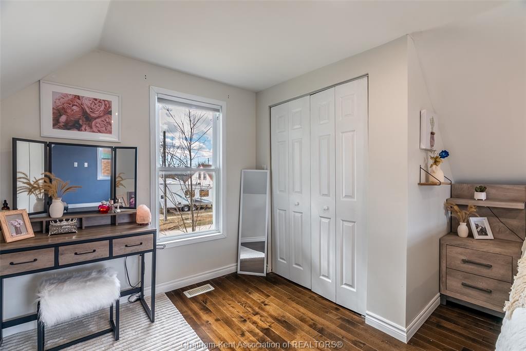 Charming 2 bedroom 1½ storey home situated on a corner lot in Wallaceburg, offering convenient main floor living and a functional layout. The front entrance leads into the bright galley kitchen with ample cupboard space and a breakfast bar, opening to a cozy dining nook perfect for everyday meals. The main floor also features a bedroom, 4-piece bathroom, and a laundry room with a convenient side entrance. The upper floor offers a cozy loft bedroom, adding additional living or sleeping space. A standout feature of this property is the impressive 20 x 24 ft detached garage—ideal for hobbyists, extra storage, a workshop, or secure parking. Plumbing and electrical have been updated within the past 12 years. The home is also equipped with an exterior furnace and A/C unit for efficient comfort. Enjoy the fenced backyard with a back deck, perfect for relaxing or entertaining. The side street is a quiet dead end, offering minimal traffic and added privacy. A great opportunity for first-time buyers, downsizers, or investors looking for a well-maintained home in a friendly community. Love Where You Live!