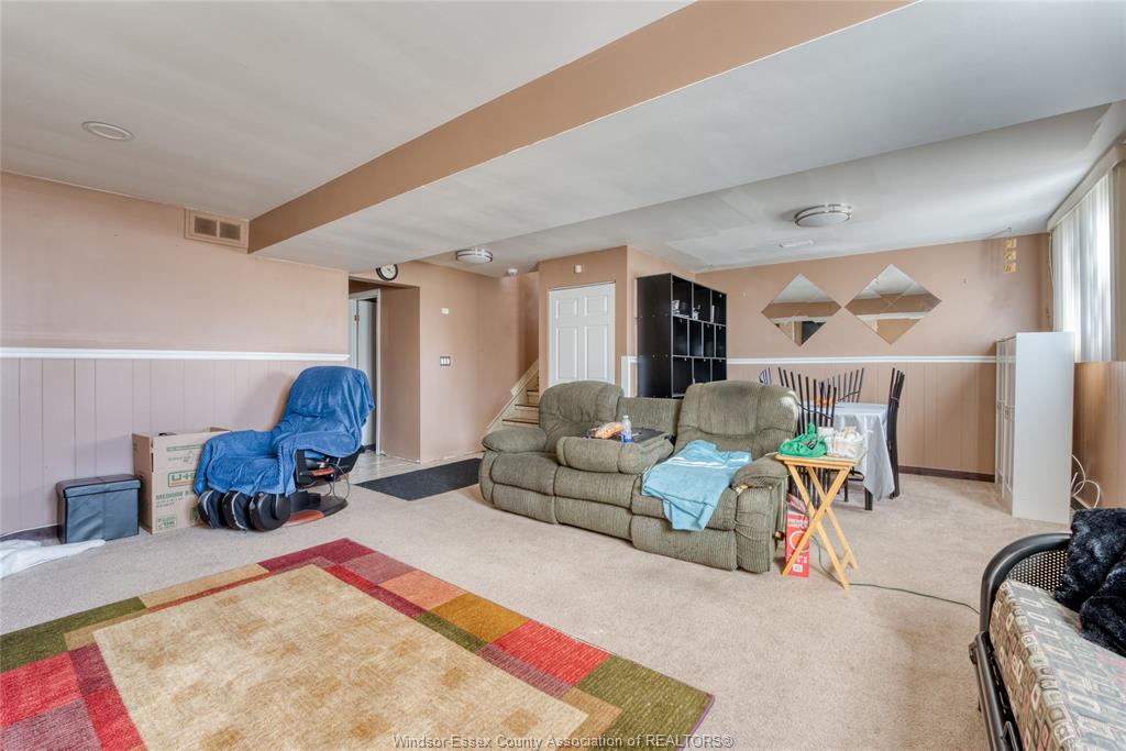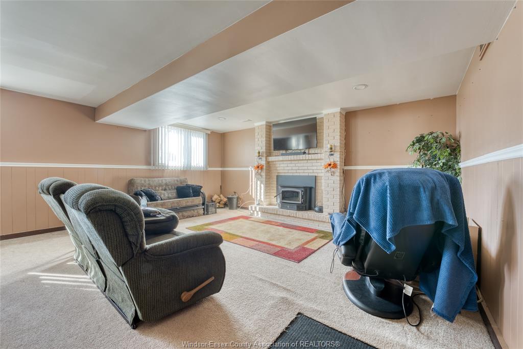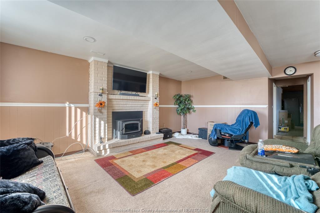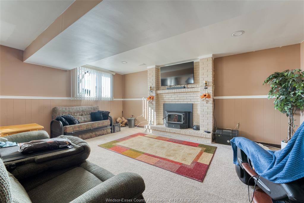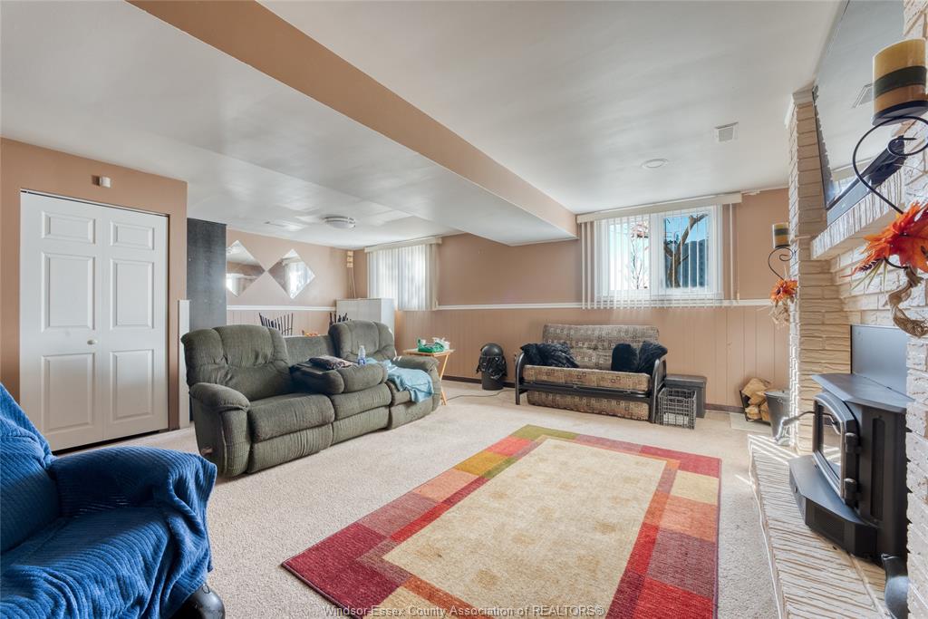 bedrooms and 4 pc bath. Lower level is partially finished with a wood burning fireplace in the family