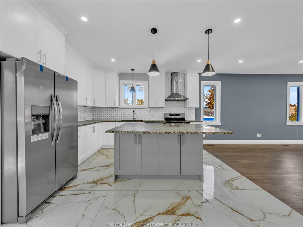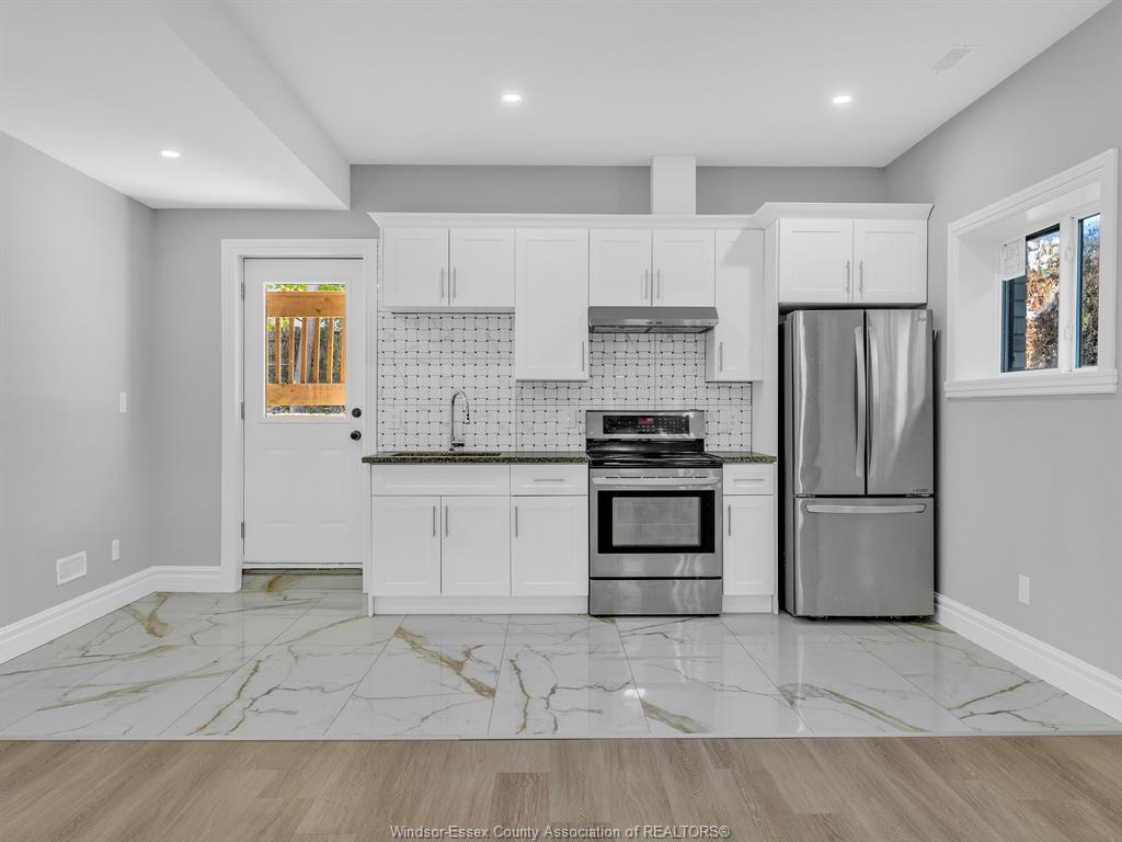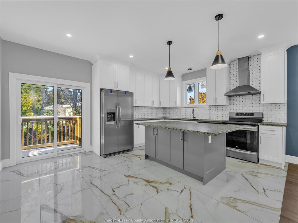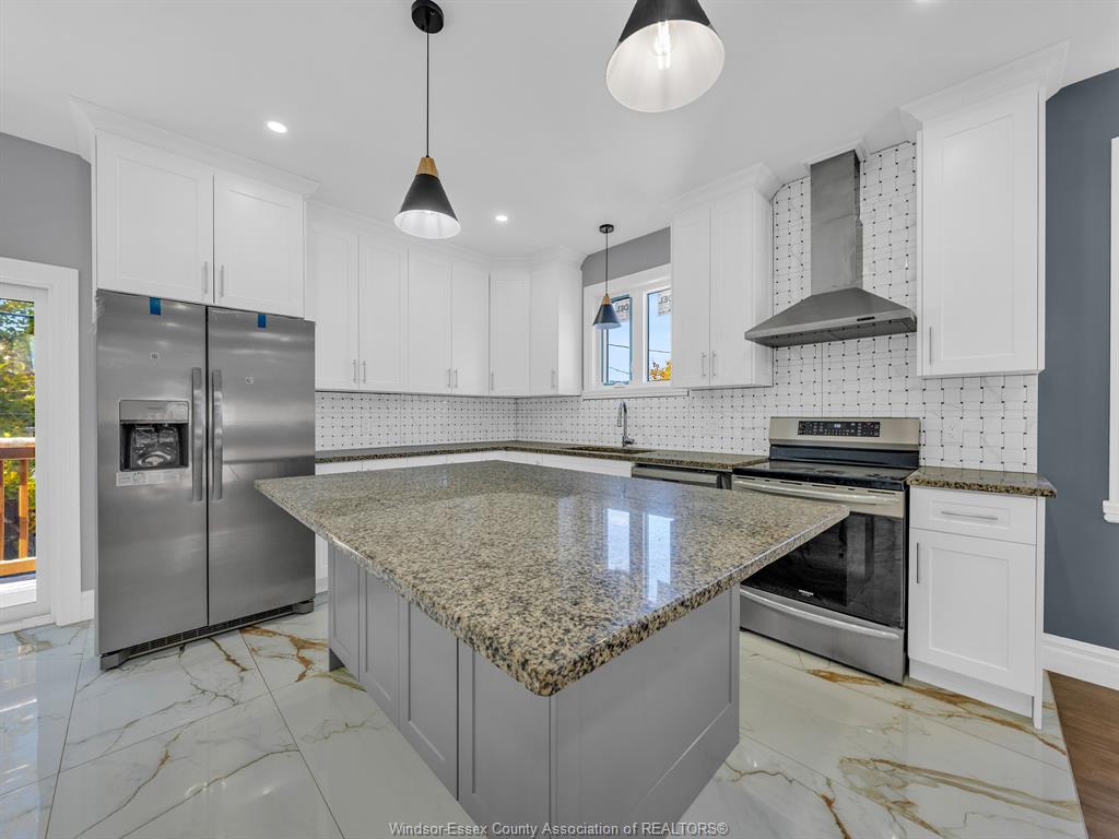 Features 2 kitchens, granite counters, brand-new appliances, grade entrance, and double driveway with new