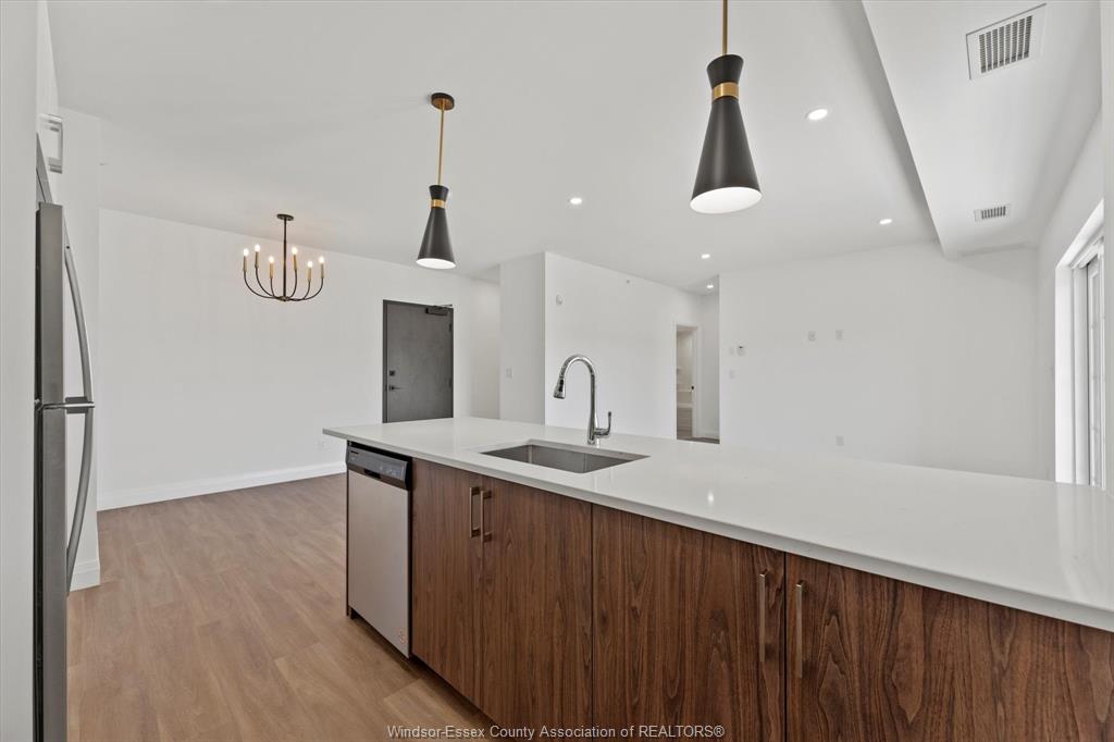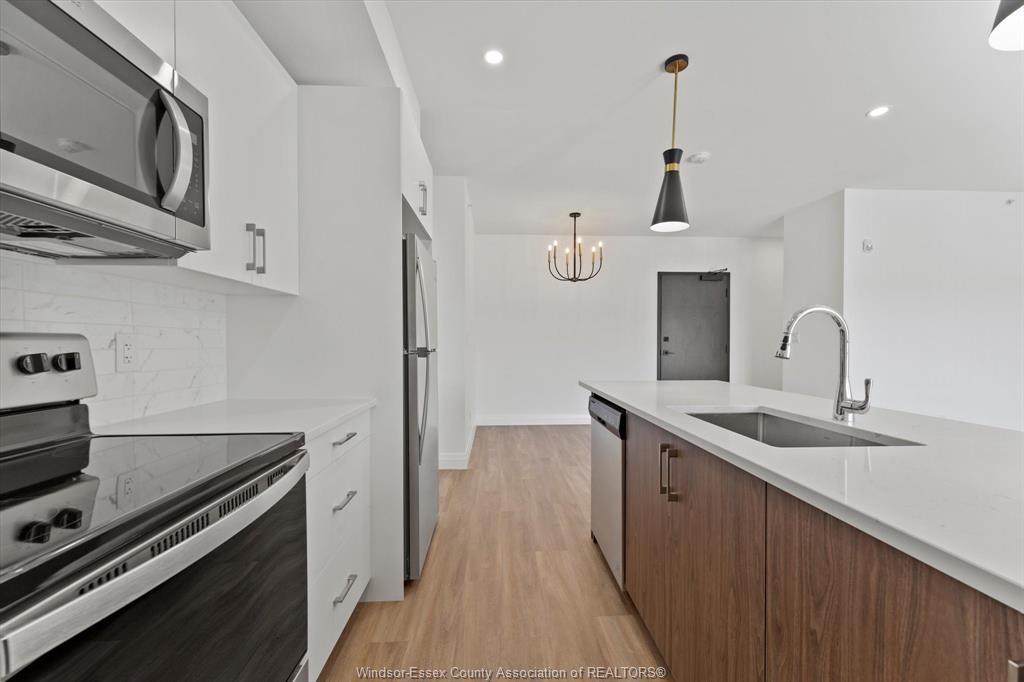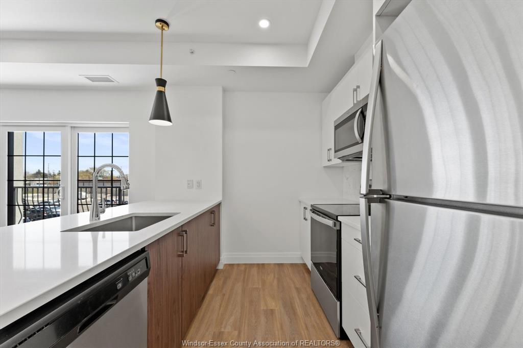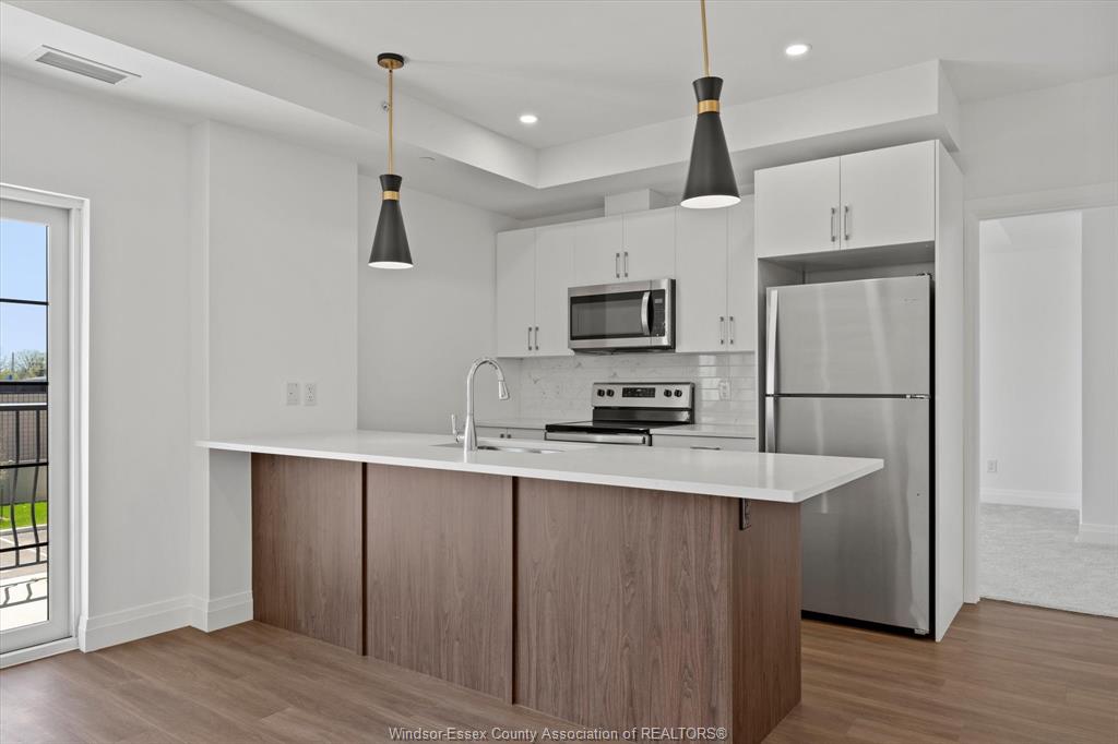 Experience luxury living in this brand-new 2-bedroom, 2-bathroom SOHO condo located in the desirable South Windsor area. This exquisite unit features an open-concept kitchen equipped with pristine quartz countertops, high-end stainless steel appliances, and elegant lighting. Extra-wide patio doors open onto a private balcony, perfect for relaxation. The suite includes in-suite laundry, one storage unit, and one parking space. Enjoy access to top-notch amenities such as a party room and fitness studio. Situated in excellent school districts and near Devonshire Mall, St. Clair College, Roseland Golf Course, and a variety of restaurants. Minimum one-year lease. Credit check and employment verification are
