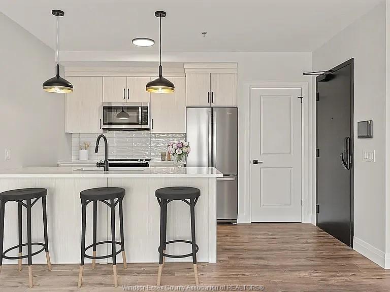 Welcome to Trinity Gate Condos, Award-winning development and proud winner of the 2024 WEHBA Award of Distinction.Phase3-Castillo now available leasing,with occupancy Mar 1, 2026. Opportunity to be 1st tenant in brand-new, professionally managed smart building with luxury finishes throughout. 1068sqft. Morano I unit offers 2B and 2 Bath with custom-designed open-concept kitchen,dining,and living area. Vinyl plank flooring,porcelain tile,quartz countertops, upgraded Whirlpool appliances,9-ft ceilings, spacious PB W walk-in closet and ensuite. in-suite laundry/storage, private balcony with glass railing,10"wall pad with controls for HVAC, security cameras,and video feed to the lobby. Amenities: Sit-in lobby with free wifi, Gym, party room, outdoor pavilion, EV chargers, Handicapped and visitor parking, Keyless access system, and Neighborhood commercial s-pharmacy, express, café. Located near Nextstar,Amazon,Minth Group,Bus Stop,schools,parks,trails,shopping, restaurants, 401 and airport. Rent is 2395+utilities,One outdoor parking and grounds maintenance included,no condo fees. Mandatory Bell Fibre high-speed internet (Smart One) $100/month (HST included, unlimited Wi-Fi). Min 1-yr lease.application, references, credit & employment check required. Lockers and bicycle racks (available for $50 per month). 80+ units available – pick your ideal home today. Promo-$1000 off + 3 Months Free Internet for 2b2b units March Move-ins Only.