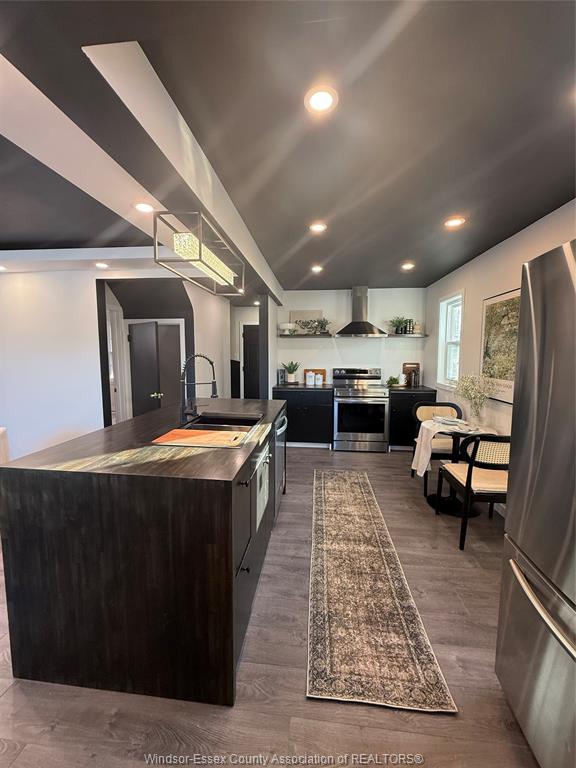 stove with new rangehood, refrigerator, new dishwasher, washer & Dryer, all light fixtures, storage shed, deck canopy with built in bench. Driveway