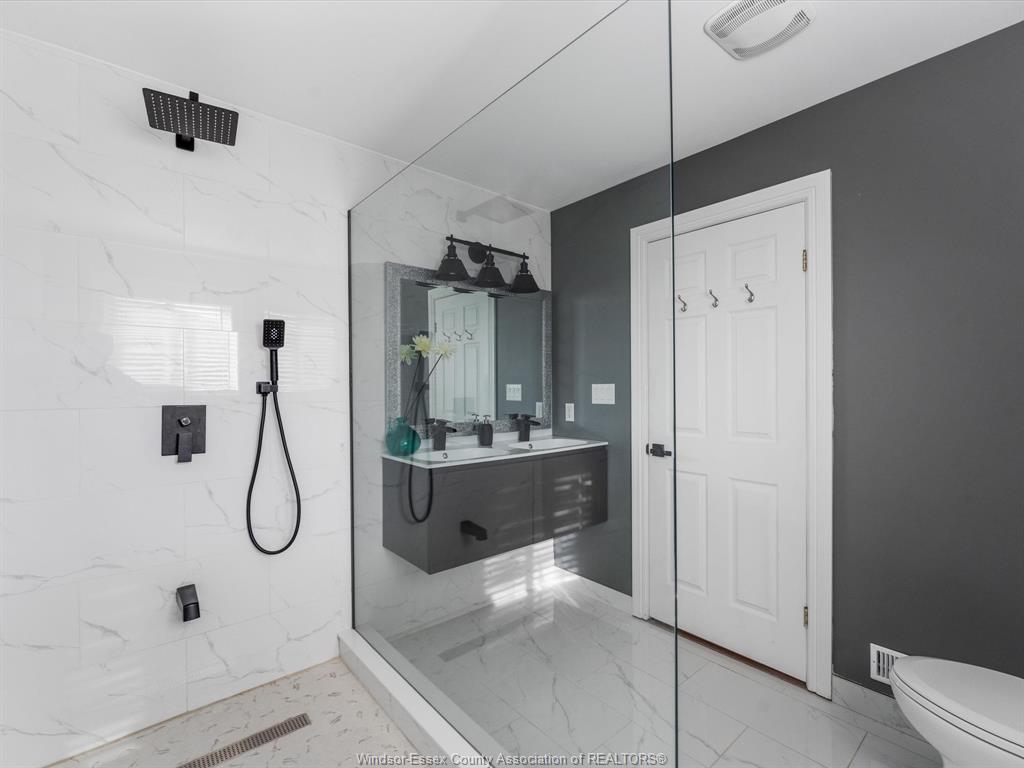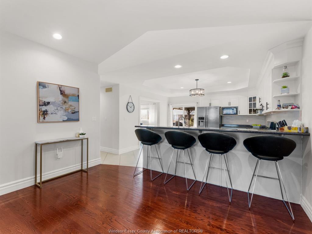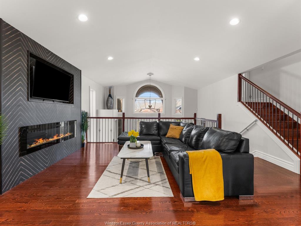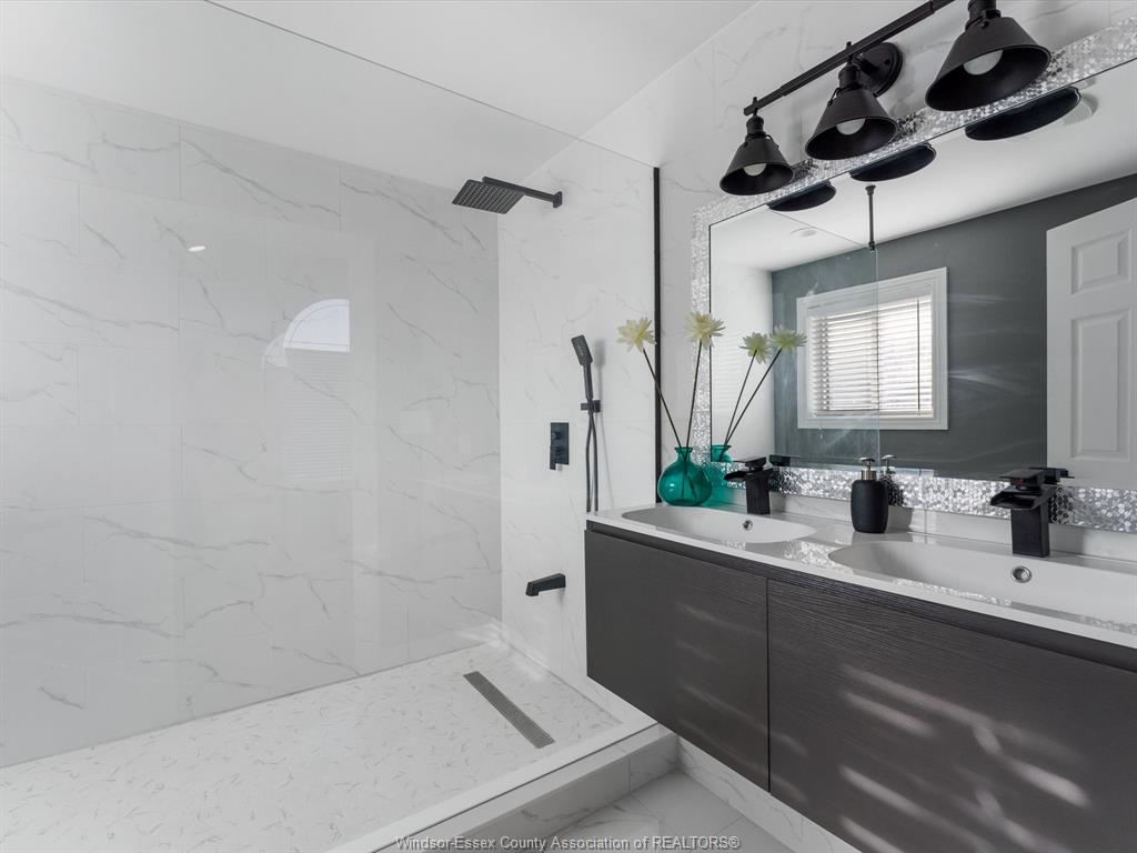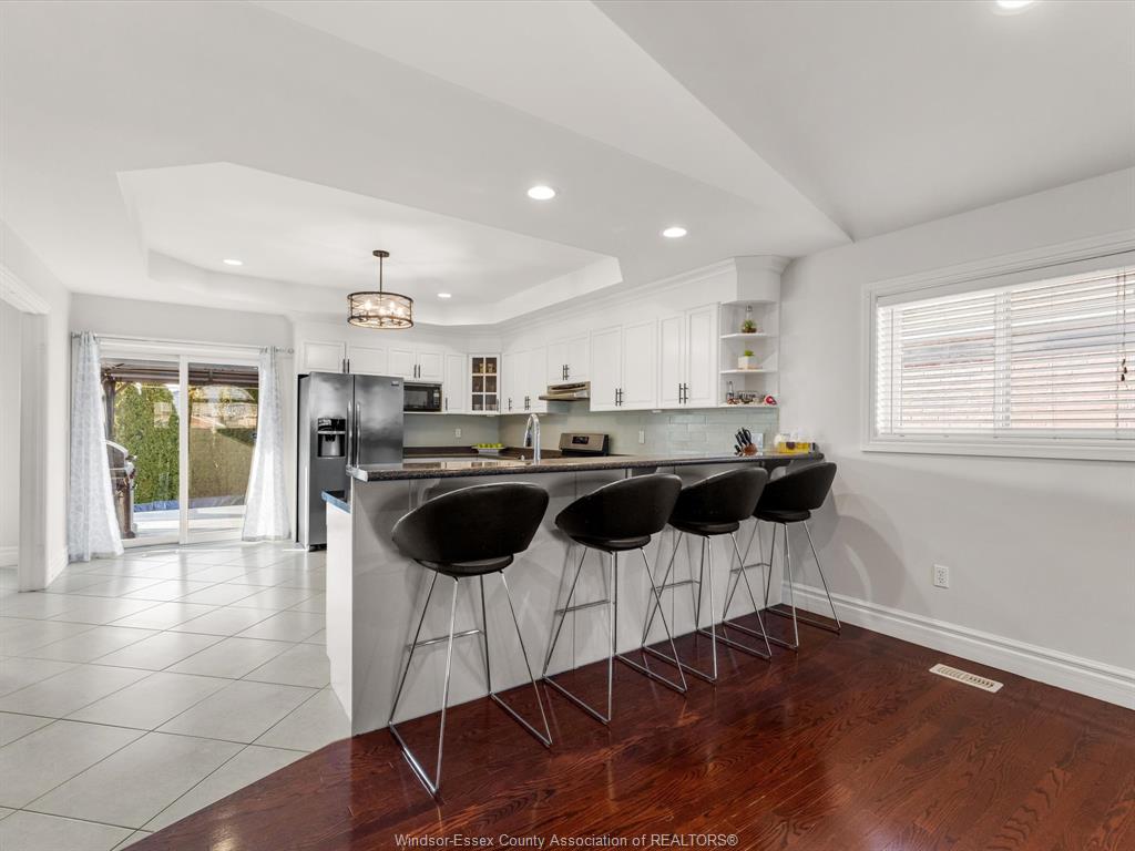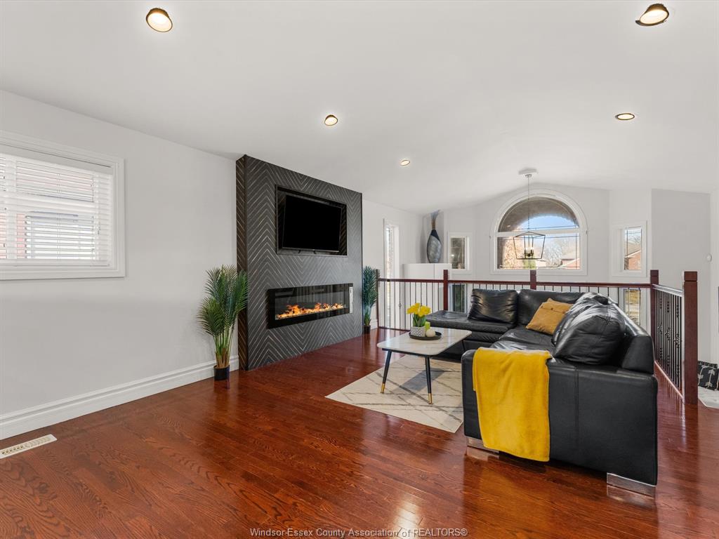Very spacious full brick and stone raised ranch with a bonus room, located in a highly desirable East Windsor neighbourhood. This home features a bright, open-concept floor plan with generous living space, offering 3+1 bedrooms and 3 full bathrooms. The main level boasts a large kitchen with adjoining dining area and an expansive living room—perfect for entertaining.The private second-level primary suite includes a walk-in closet and a beautifully updated ensuite bath. The lower level offers a fourth bedroom, a large family room with gas fireplace, a wet bar, and a convenient grade entrance. Outside, enjoy a nicely landscaped yard designed for privacy, a covered rear porch, above-ground pool, and a stamped concrete driveway. Situated in a safe, family-oriented neighbourhood with excellent schools, just steps from Windsor’s riverfront, scenic trails, parks, shopping, and more.