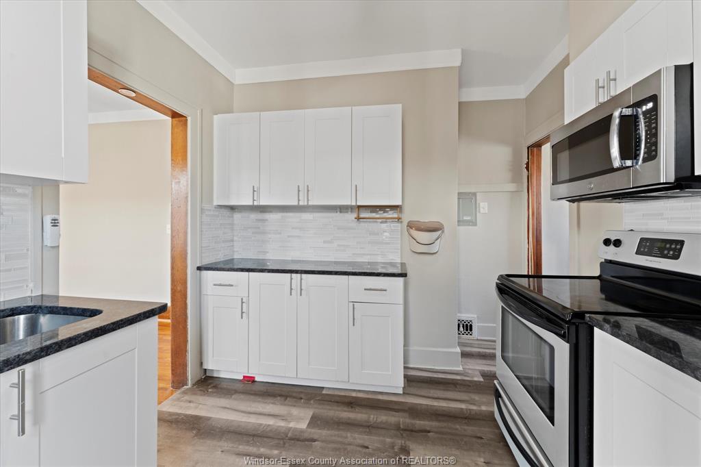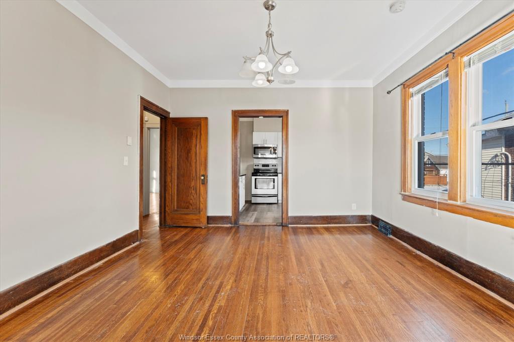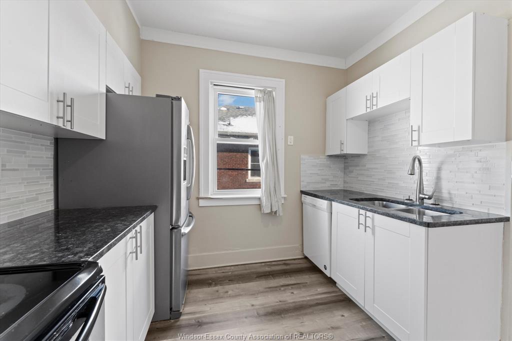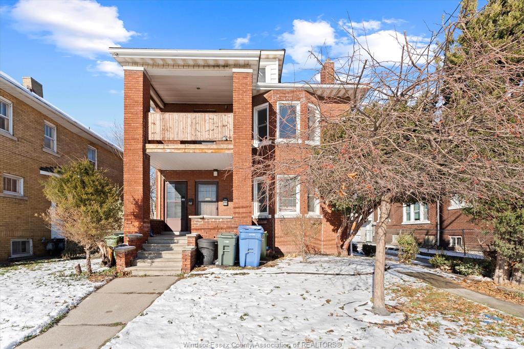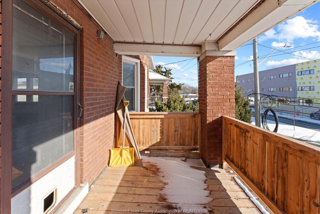 Full Brick 2 1/2 storey up and down duplex with nicely finished hardwood floors and trim throughout. Fully renovated kitchen, bathrooms, good-sized bedrooms, full basements with tall ceiling heights equipped with waterproofing, washer and dryer sets. Full balcony and massive loft space on the 3rd floor. Completely separate hydro, gas meters, furnaces, AC units. Newer vinyl windows throughout. Parking space off the alley, shared side patio. Tenants pay all utilities. All appliances included. Located Central Windsor, walking distance to shopping and retail along Ouellette and Erie, minutes from Kennedy High School.