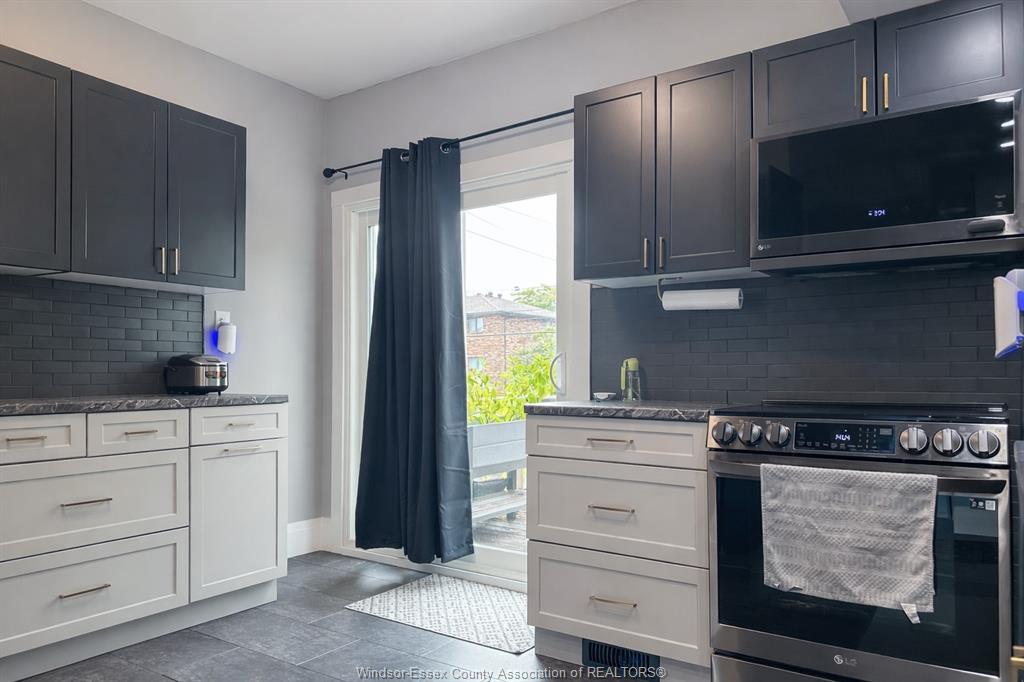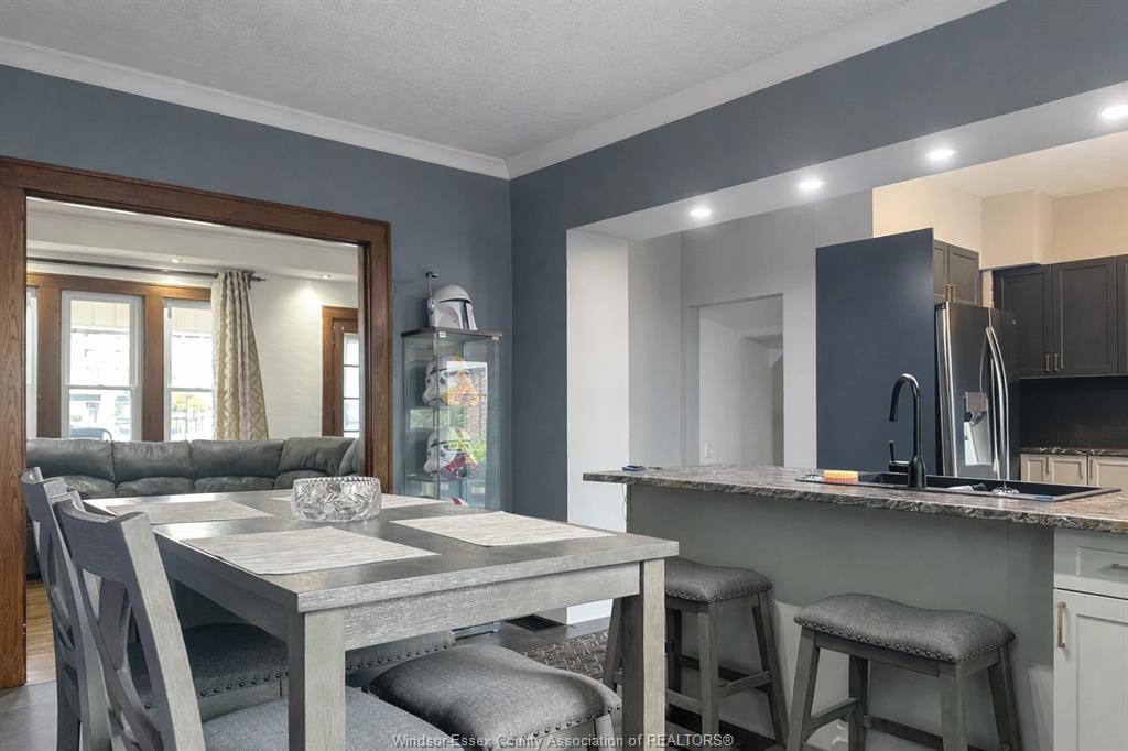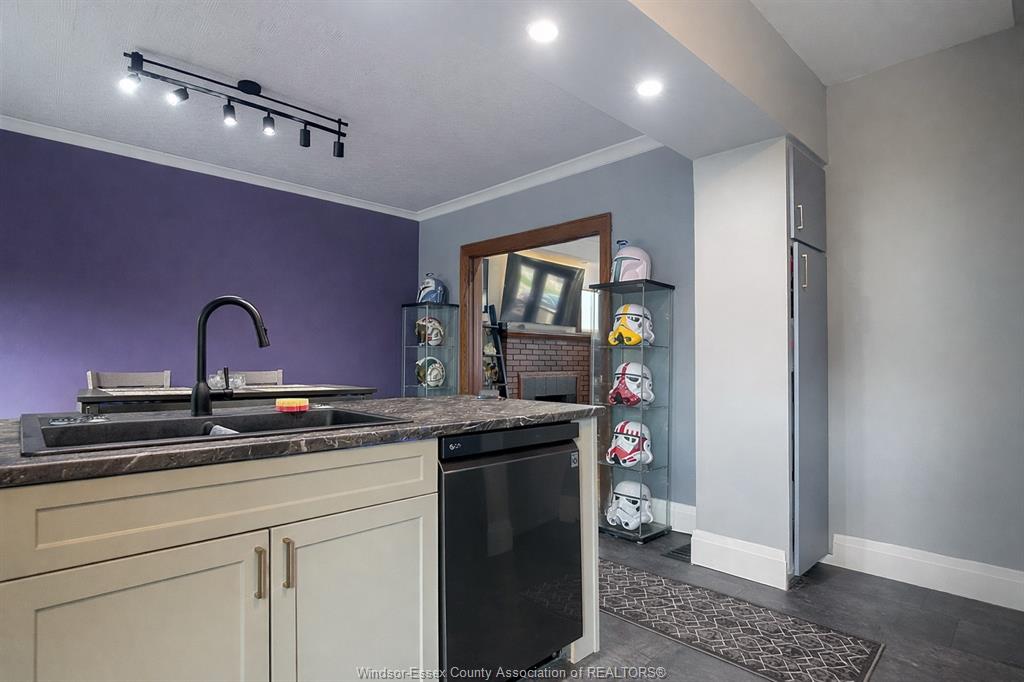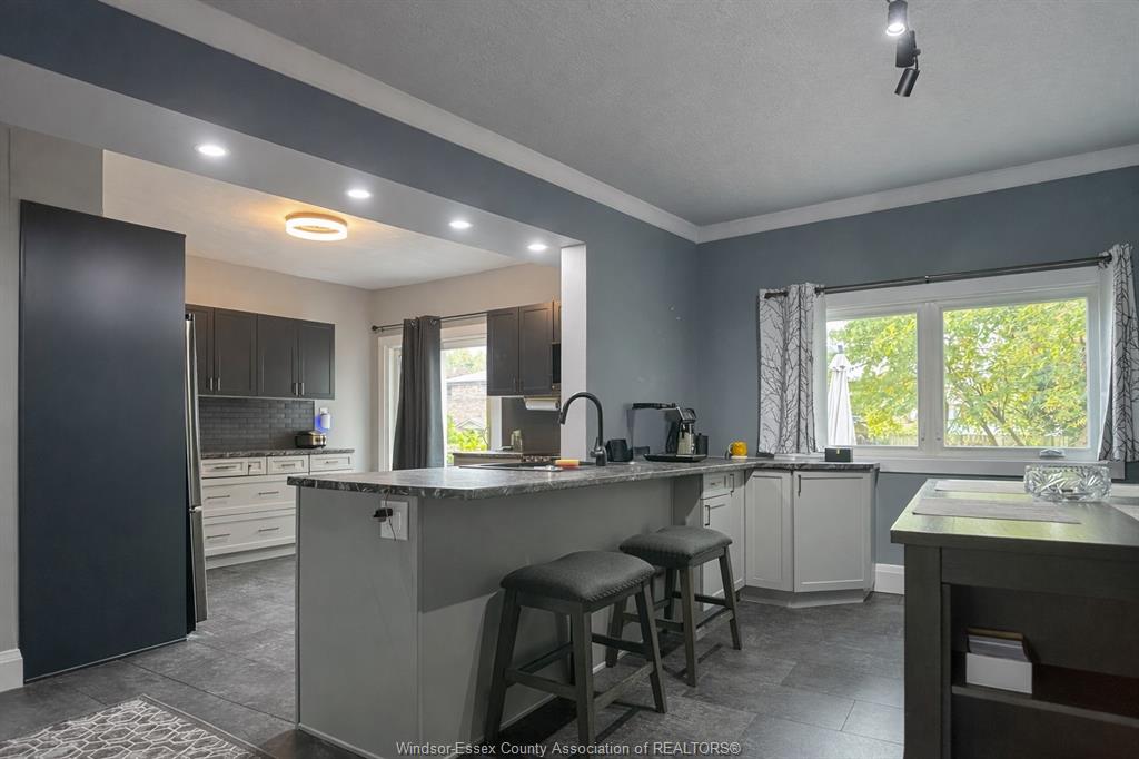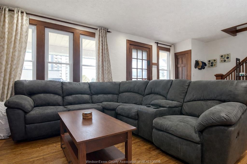 ATTENTION FIRST TIME HOME BUYERS AND INVESTORS. Great value in this Updated 1¾-storey home offering charm, space, and income potential. Features a fully renovated kitchen and dining area (2023) with high-end appliances, coffee bar, new dining window, and sliding patio door. Bright main floor with hardwood floors in living and dining rooms. Upper level offers 3 spacious bedrooms and a full bath. Mostly finished basement includes an additional bedroom, full bathroom, and rough-in for second kitchen—ideal for in-law suite or rental potential. Exterior features include a covered front porch, fenced yard with new rear fence (2025), finished driveway, and updated front landscaping (2023). Major updates: kitchen/dining (2023), front porch (2025), roof & windows (2018), waterproofing & sump pump (2020), and tankless hot water heater. All appliances included. Plenty of upward potential with the revitalization of the downtown Windsor. Conveniently near amenities and tunnel crossing—ideal property for first time home buyers and investors.