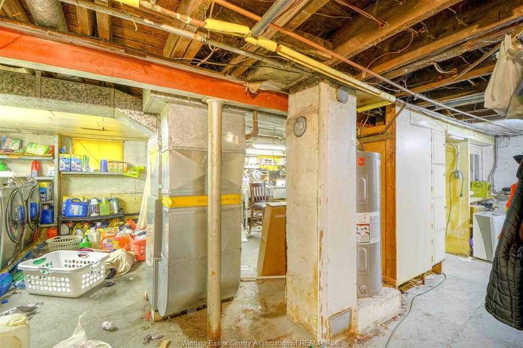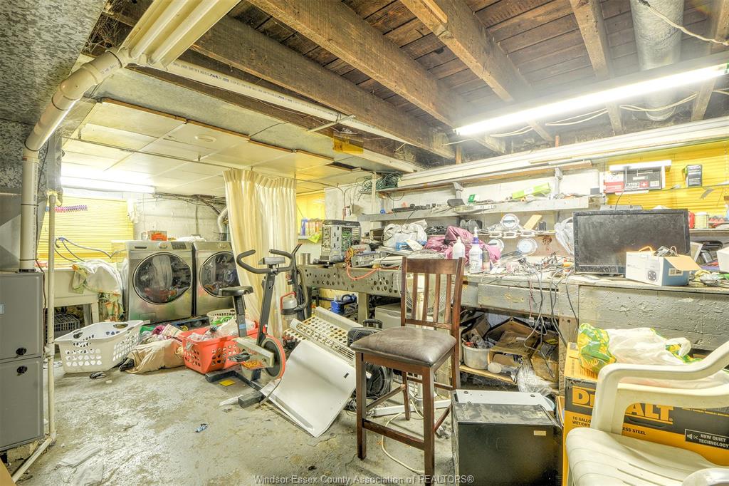 utility/storage area with Laundry. Outside in the backyard a Concrete Block Garage with driveway onto