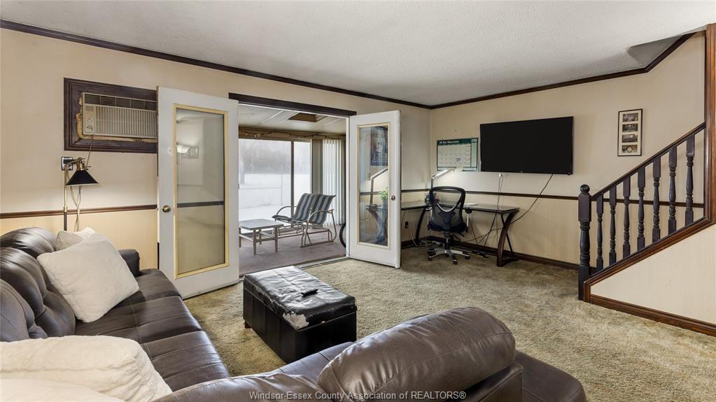 Welcome to 2920 Meadowbrook, Unit 1, an END unit two-storey townhome backing directly onto a golf course with no rear neighbours. This home offers 2 bedrooms (formerly 3 and easily converted back) and 1.5 bathrooms, featuring an open-concept living and dining area ideal for entertaining. The primary bedroom includes a hot tub located within the room, included in as-is condition. The finished basement adds additional living space and includes a bar area, perfect for relaxing or hosting guests. Enjoy the rare, grandfathered-in sunroom/enclosed rear porch overlooking the green space — a unique feature within the complex. Conveniently located close to bus routes, shopping, grocery stores, EC Row Expressway, and the new battery plant, making it ideal for commuters and investors alike. Monthly maintenance fees of $407 include water, grass cutting, and snow removal, offering low-maintenance living. Offered at market value with offers considered as they come.