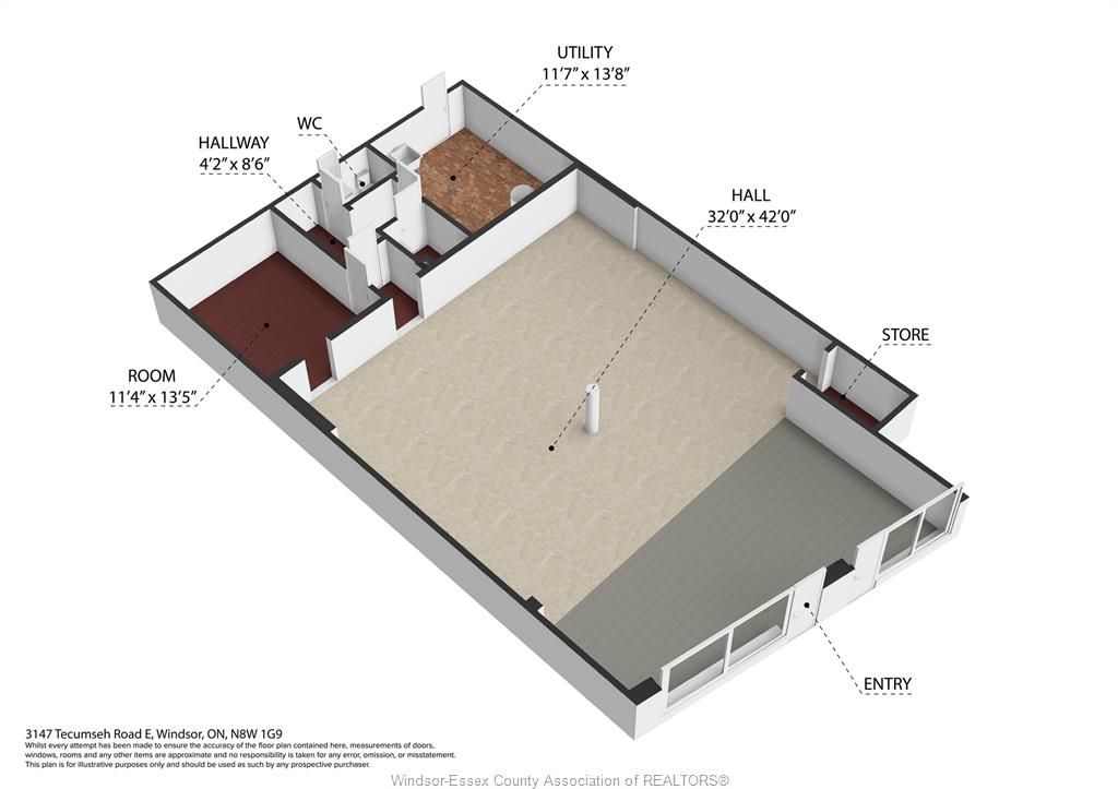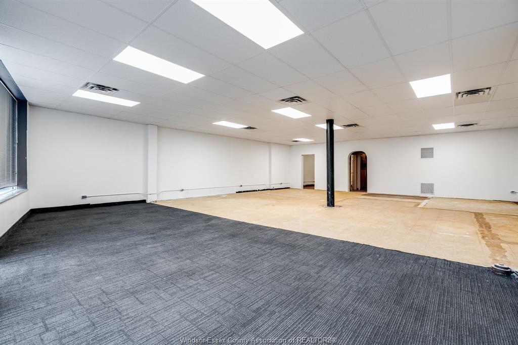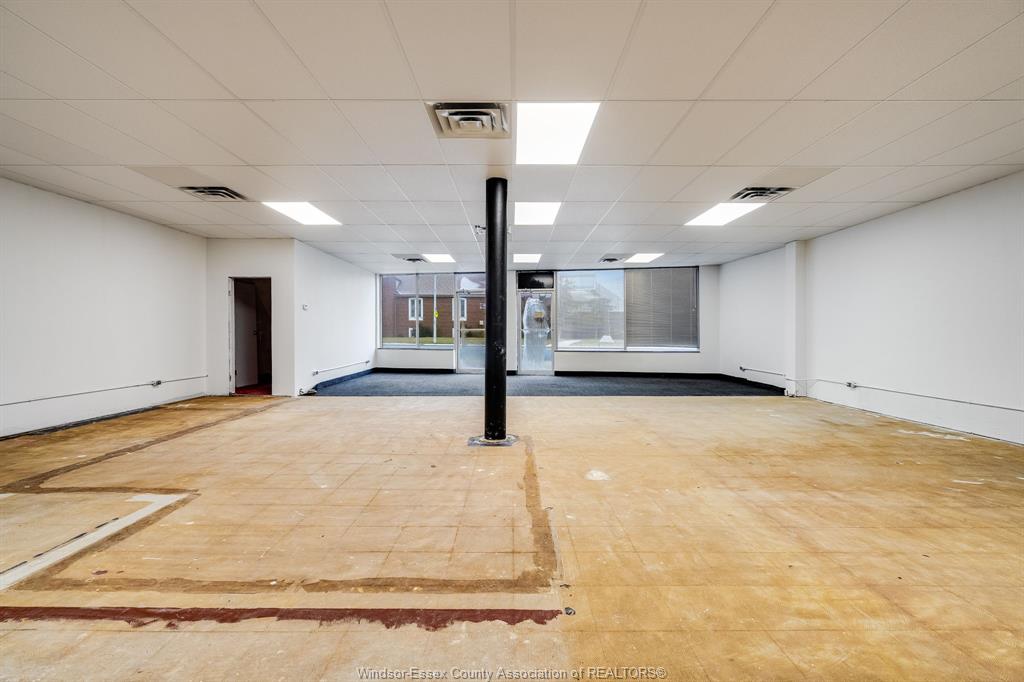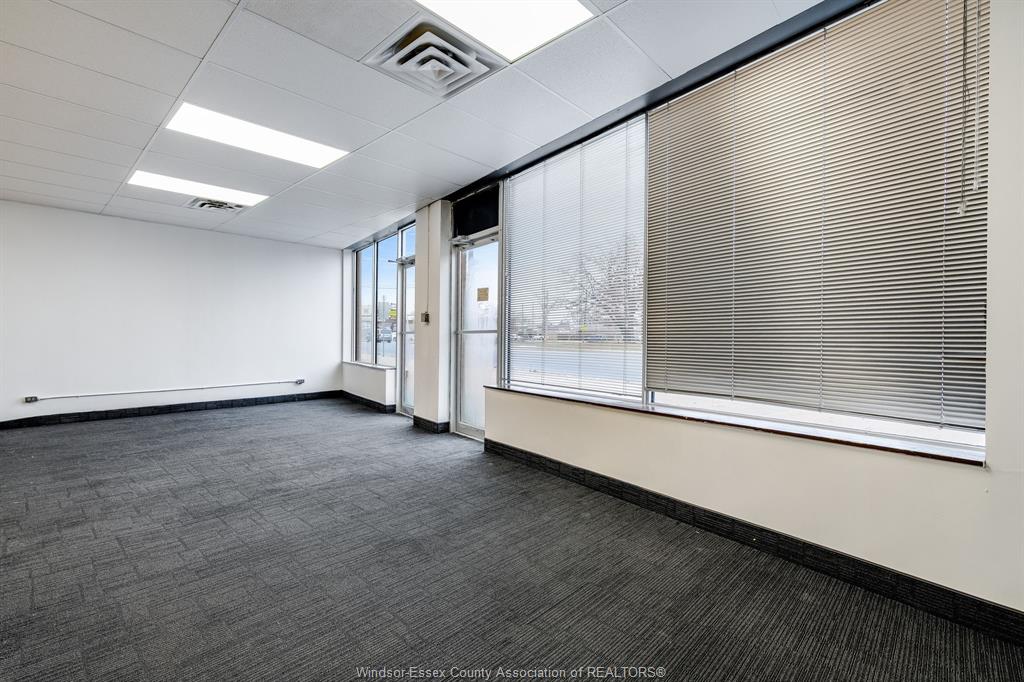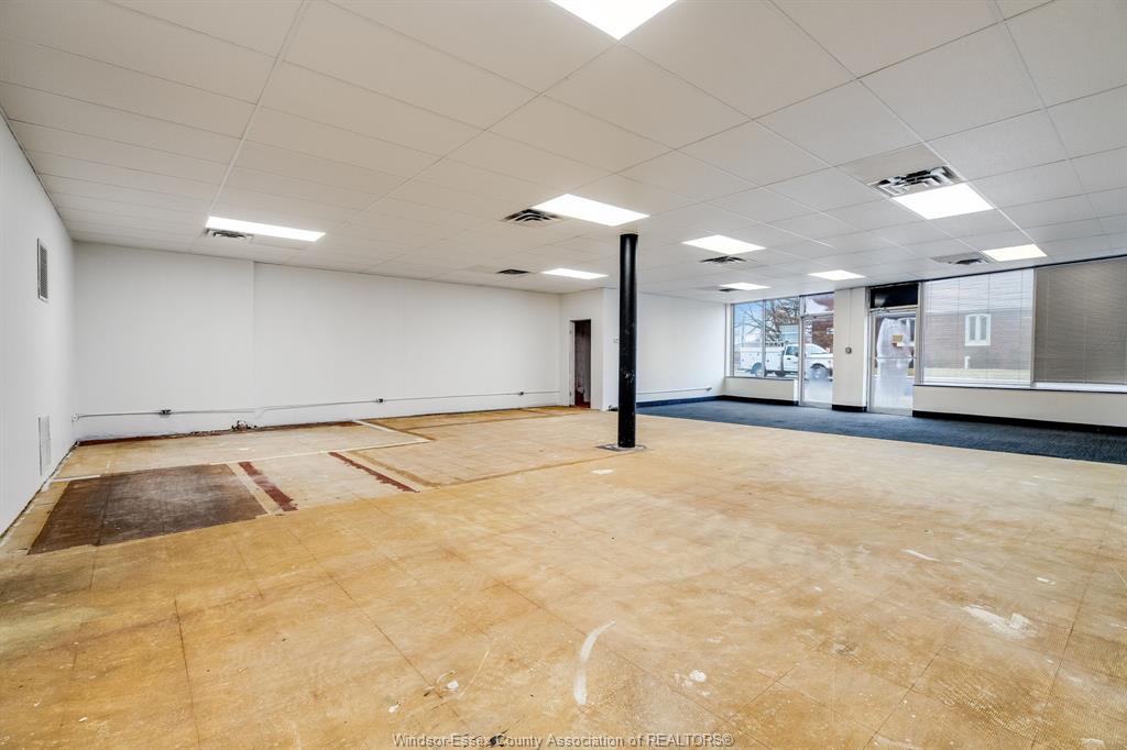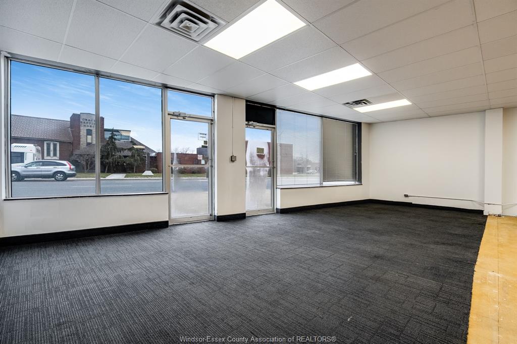 Well-located commercial space available for lease along a high traffic stretch of Tecumseh Road East in Windsor. This versatile ground-floor unit offers excellent street exposure, large front windows, and a flexible open-concept layout well suited for a wide range of commercial and professional uses. The main area features an expansive open hall with high ceilings and bright overhead lighting, providing a functional layout that can easily be adapted for retail, office, showroom, service, or studio-style uses. A private rear section includes a separate room, utility area, storage, and two washrooms, offering added functionality and convenience for staff or clients. Rear access provides practical loading and service capability. The space has been freshly painted and is ready for a tenant to customize to suit their business needs. Zoned CD2.1, allowing for a broad range of commercial used including retail, professional offices, personal services, medical or wellness-related uses, and more, subject to City approval. Tenant to pay hydro and gas. A solid opportunity for businesses seeking visibility, flexibility, and value in an established east Windsor commercial corridor.