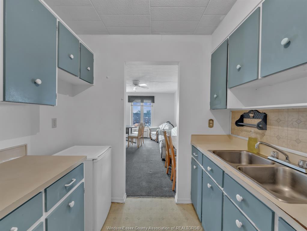 1 bedroom, 1 bath unit offers a functional layout with a bright living/dining area, efficient galley kitchen, and a comfortable bedroom