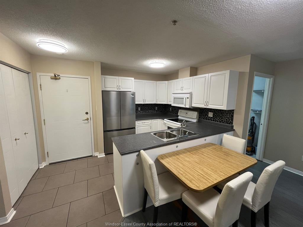 The unit features a spacious and sun-filled living area, perfect for relaxing or entertaining, seamlessly flowing into the dining space. The functional kitchen offers ample cabinetry and an efficient layout for everyday living.