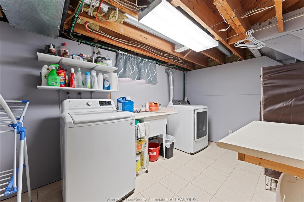 Dryer, Freezer, Microwave Range Hood Combo, Refrigerator, Stove, Washer Basement