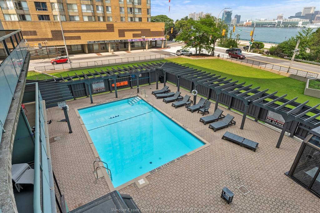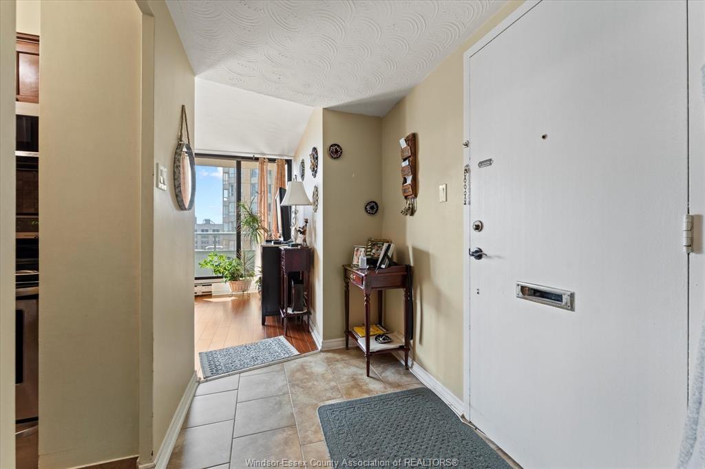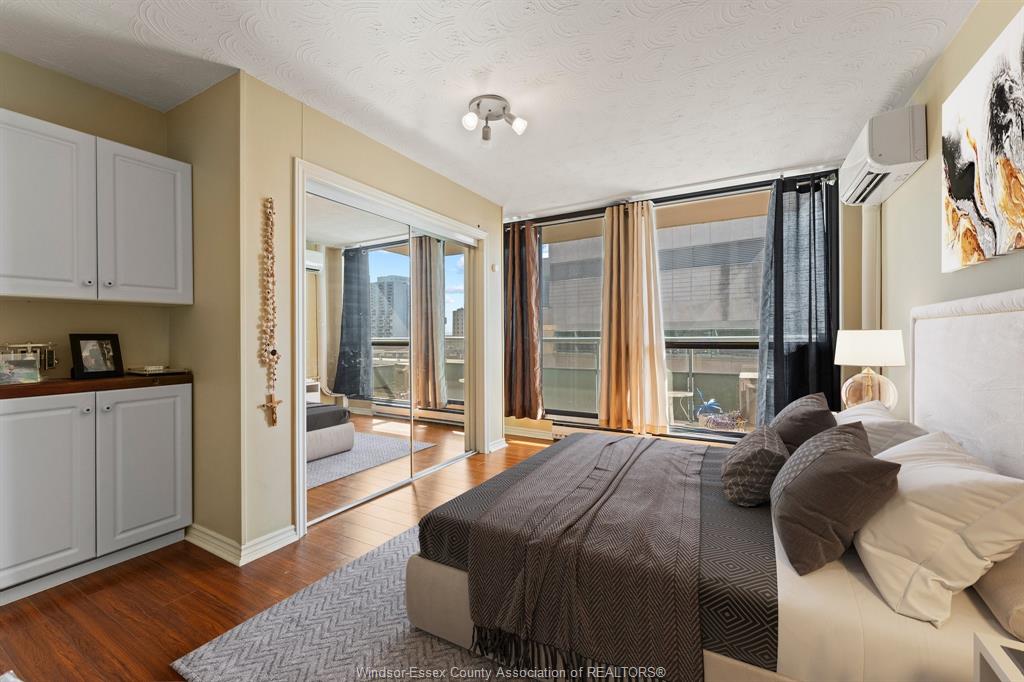 Bright, stylish, and move-in ready, this 10th-floor condo is an exceptional opportunity for investors, retirees, and young professionals seeking low-maintenance living in the heart of downtown Windsor. Offering views of the Detroit River and skyline, this thoughtfully updated unit features a renovated kitchen with granite countertops, sleek cabinetry, and a dedicated dining area ideal for both everyday living and entertaining. The spacious primary bedroom includes two closets and custom built-in storage, providing excellent functionality and organization. Floor-to-ceiling windows fill the space with natural light, while two private balconies offer the perfect place to unwind, including one with partial river views. The unit is equipped with two mini-split units for efficient heating and cooling, ensuring year-round comfort. Convenient same-floor laundry adds to the ease of everyday living. An underground parking space is included for added convenience and security. This well-maintained, pet-free building boasts desirable amenities such as an outdoor pool, saunas, and a strong history of building upgrades. Located steps from the waterfront trail, restaurants, shopping, and Caesars Windsor, the location is second to none. All utilities are included in the monthly condo fee, making budgeting simple and predictable—an attractive feature for investors and end-users alike seeking a turnkey, hassle-free property in a prime urban setting.