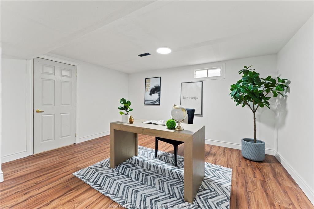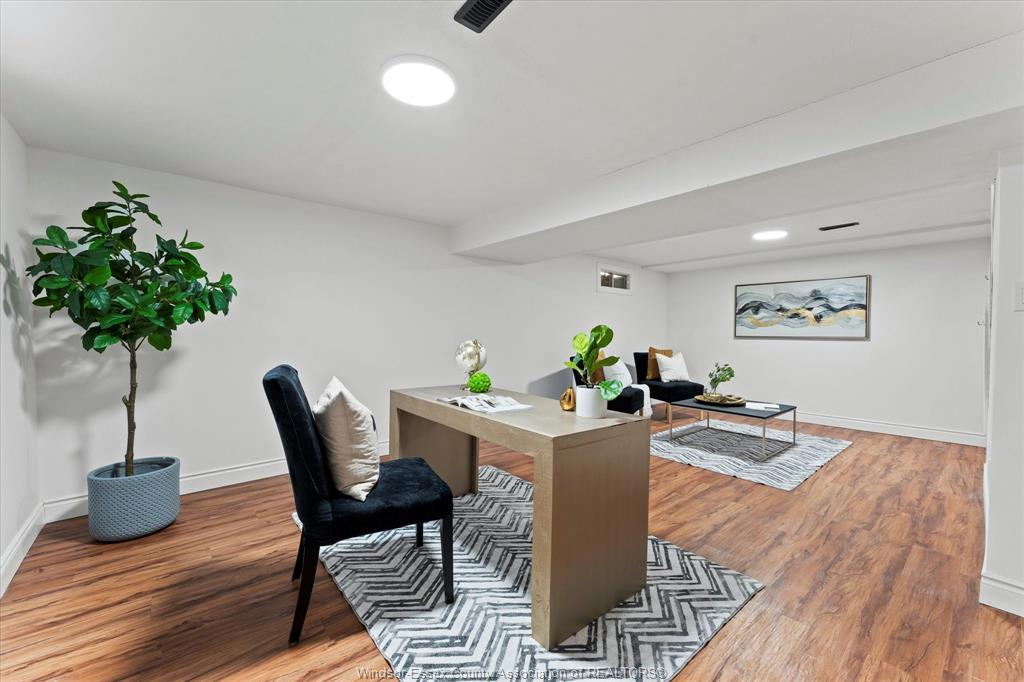 The basement includes a family room/office & utility room. Freshly painted and new vinyl flooring in