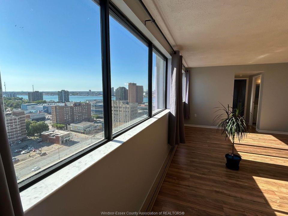WINDOWS PROVIDE BEAUTIFUL VIEWS OF THE CITY, THE DETROIT SKYLINE, RIVER, AND AMBASSADOR BRIDGE. FRESHLY PAINTED AND