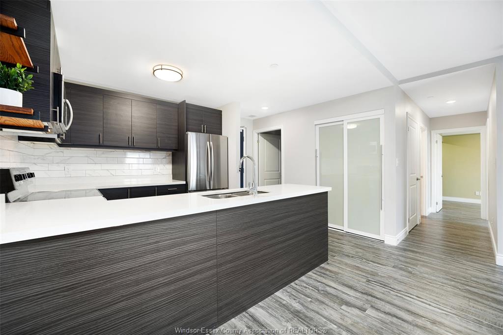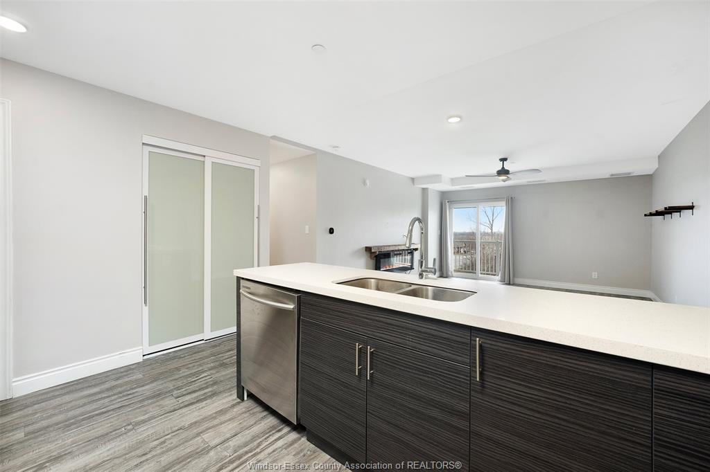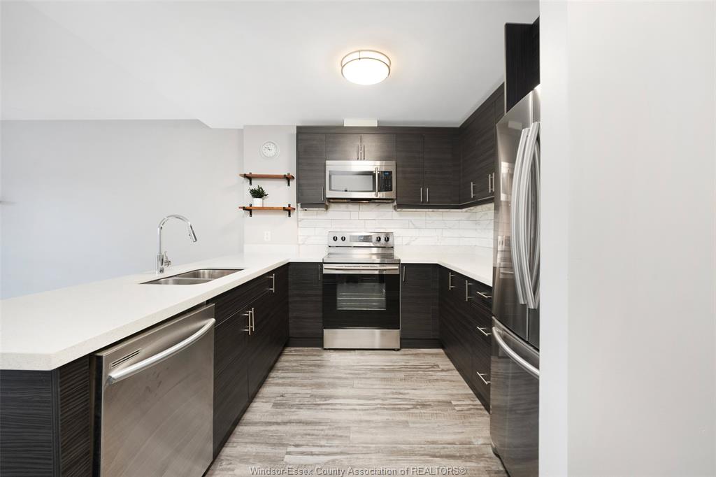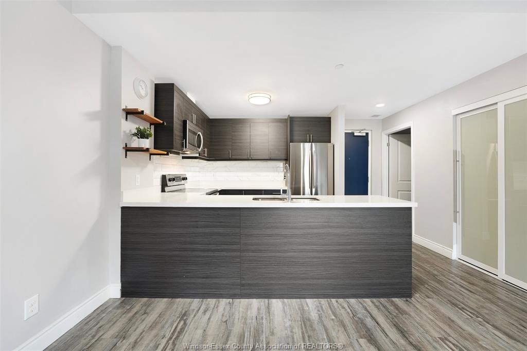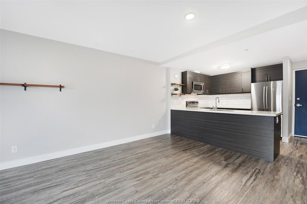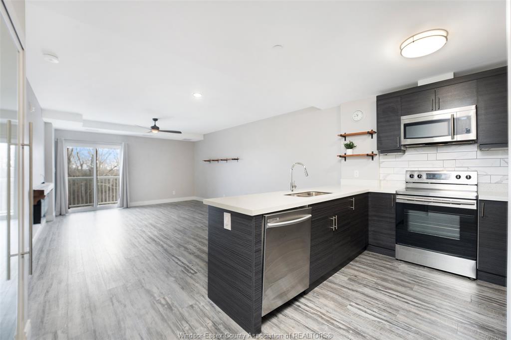 1675 Banwell #408 - For Lease! Welcome to highly sought-after East Riverside where this residence at Eastside Horizons sets the standard of elevated living. 2 beds, 2 baths with open, unobstructed views and an abundance of natural light throughout the day. The open-concept layout is calm and considered, anchored by a sleek modern kitchen with stainless steel appliances and refined finishes that flow seamlessly into the living and dining spaces. Large windows frame the outlook, creating a sense of space and quiet that feels removed from the city below. The primary suite offers a private retreat, complete with a stylish 3-piece ensuite featuring a glass shower, while the second bedroom and full bath provide flexibility for guests or work-from-home potential. In-suite laundry and thoughtful storage elevate everyday convenience. Step outside and take in the fourth-floor balcony vantage point—a peaceful setting ideal for morning light, evening skies, and a lifestyle defined by ease rather than upkeep. Perfectly positioned near parks, walking trails, shopping, schools, restaurants, public transit, and quick access to EC Row Expressway, this is refined condo living—balanced, elevated, and effortlessly livable. Designated parking spot included. Call Today!