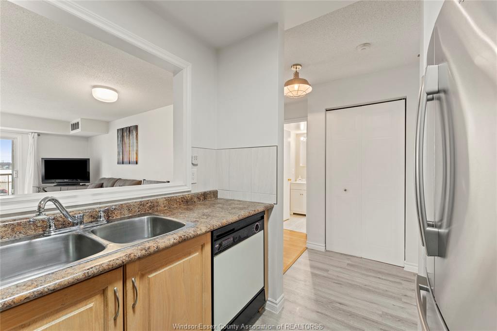 Enjoy low-maintenance living in this bright corner unit with north-facing river views, just steps from the University of Windsor. Offering approx. 1,000 sq ft, this 2-bedroom, 2 full bathroom condo is perfect for first-time buyers, investors, or students. The unit features laminate flooring, stainless steel appliances, and in-suite laundry, with recent updates including furnace & A/C (2021), washer & dryer (2024), an updated ensuite bath, and a refreshed second bath with newer vanity and flooring. Located in a secure building with elevator access, designated parking space and ample visitor parking. Close proximity to campus, amenities, and the downtown waterfront, this is a move-in ready opportunity! Call today for your viewing.