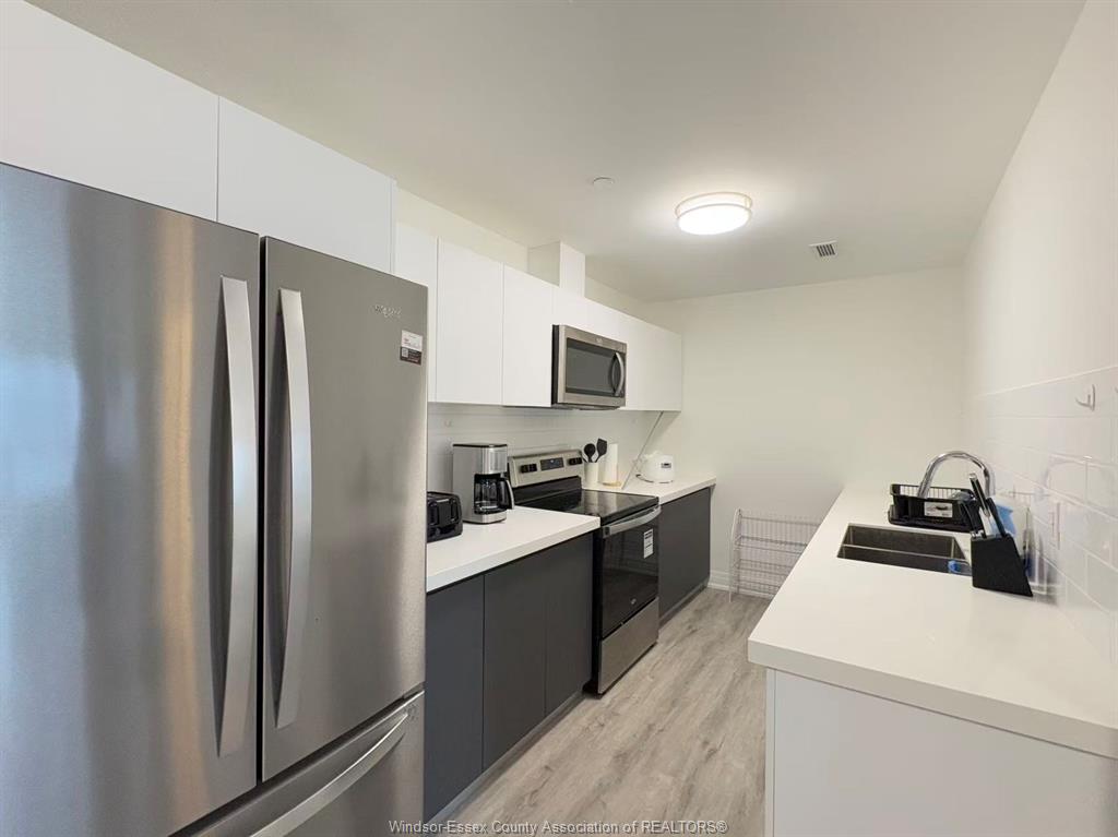private balcony with beautiful tree views, elegant LED lighting, in-suite laundry, premium vinyl flooring,