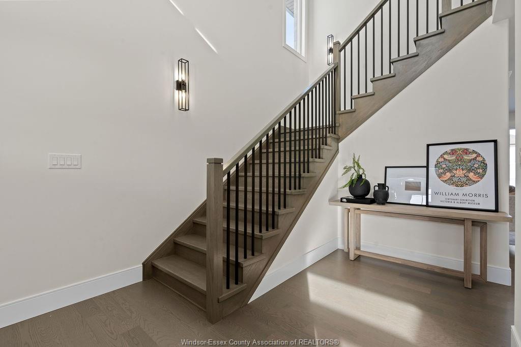 include solid oak staircase, custom wainscotting and engineered hardwood flooring. Spacious with 9 ft main floor