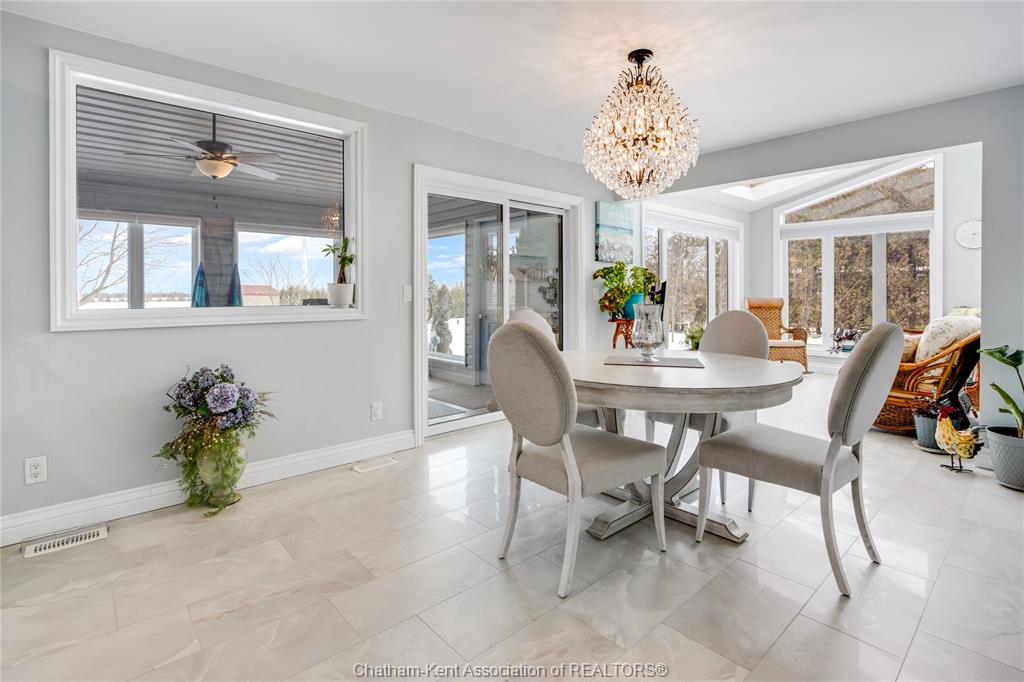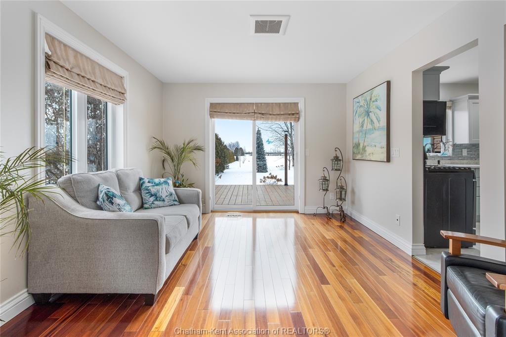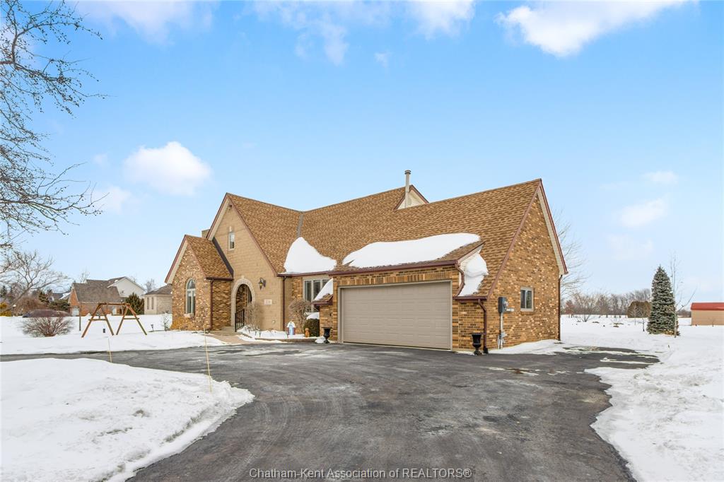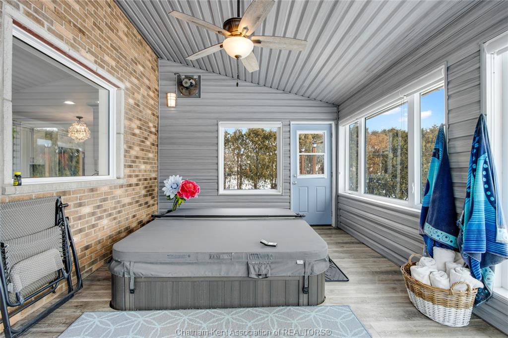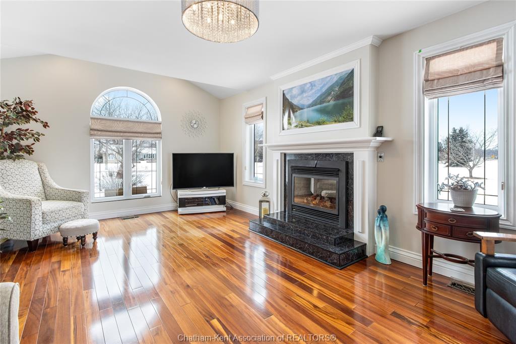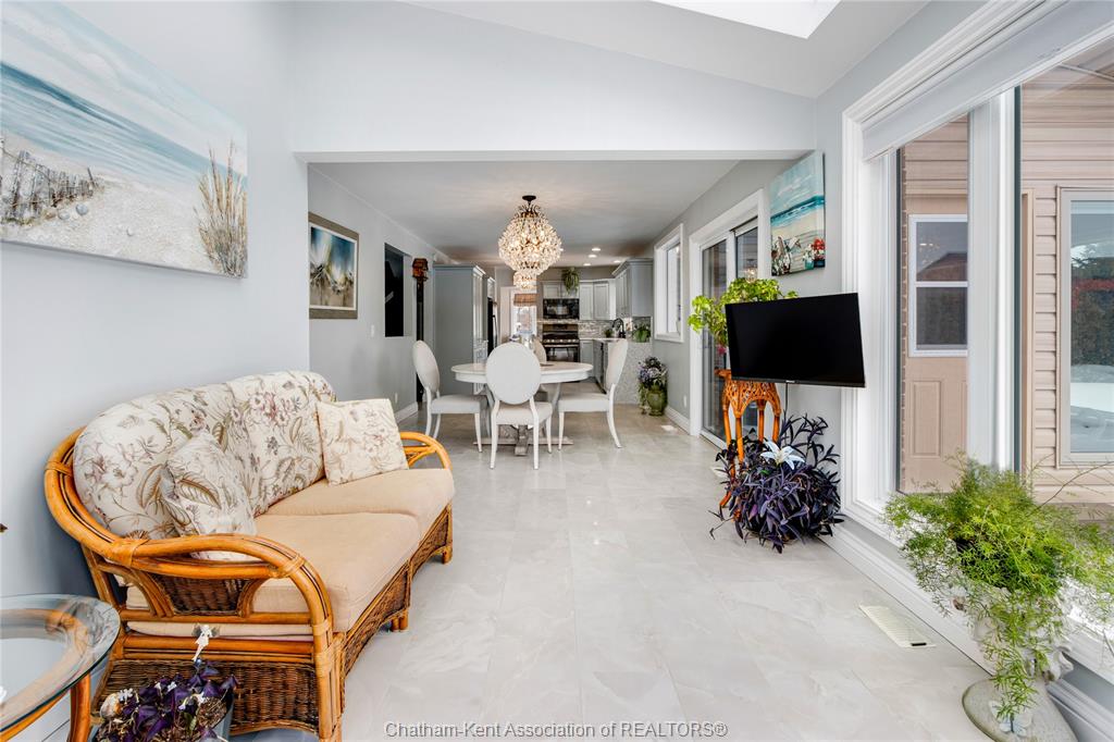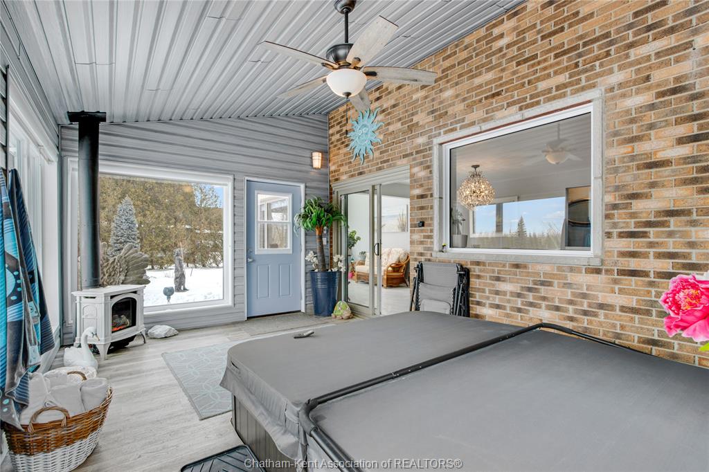 Situated on a large, private country lot with agricultural zoning at the rear, this unique two-storey home showcases true pride of ownership. Step inside and you’ll immediately notice the many upgrades, including Brazilian hardwood and porcelain tile throughout the main floor plus a sleek porcelain staircaise. A convenient office or main-floor bedroom is located just off the front entry. The heart of the home features a stylish kitchen with quartz countertops and a stunning waterfall edge that connects the dining area and sunroom featuring huge skylights. This bright, open space is filled with natural light, creating an incredible sun-soaked atmosphere throughout the day. The warmth continues into the 2nd sunroom where you’ll find ample windows, a hot tub and a cozy gas fireplace that is perfect for relaxing year-round. The living room also offers a gas fireplace and connects to a potential formal dining space, complete with a wet bar rough-in and patio doors leading to a large deck overlooking the deep treed backyard . Upstairs, you’ll find four bedrooms, including a primary suite with his-and-hers closets and a stylish ensuite featuring a walk-in marble-tiled shower. An adjacent bedroom offers direct access to the primary, making it ideal for a nursery, office, or impressive walk-in closet. Designed with convenience in mind, this home also includes a large walk in attic space for extra storage, a 21’ x 17’ shed, and a spacious horseshoe driveway leading to a double attached garage. Located just 10 minutes from Belle River, 25 minutes to Kingsville, and 30 minutes to downtown Windsor. Don’t miss this incredible opportunity—call today!
