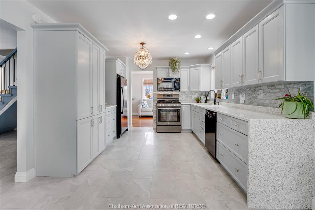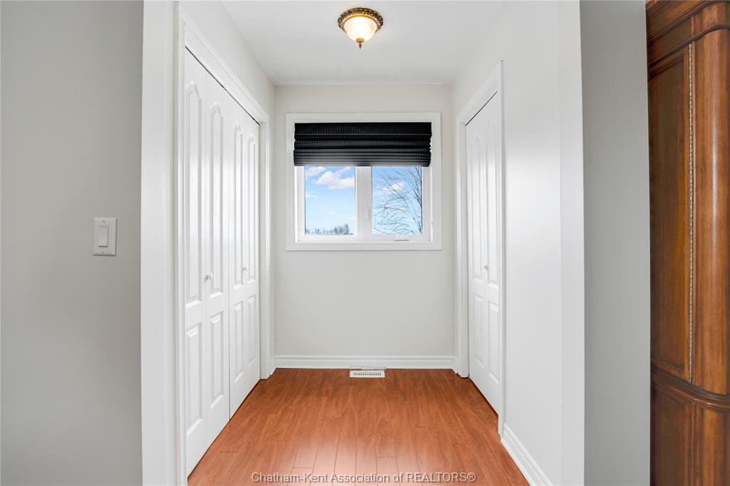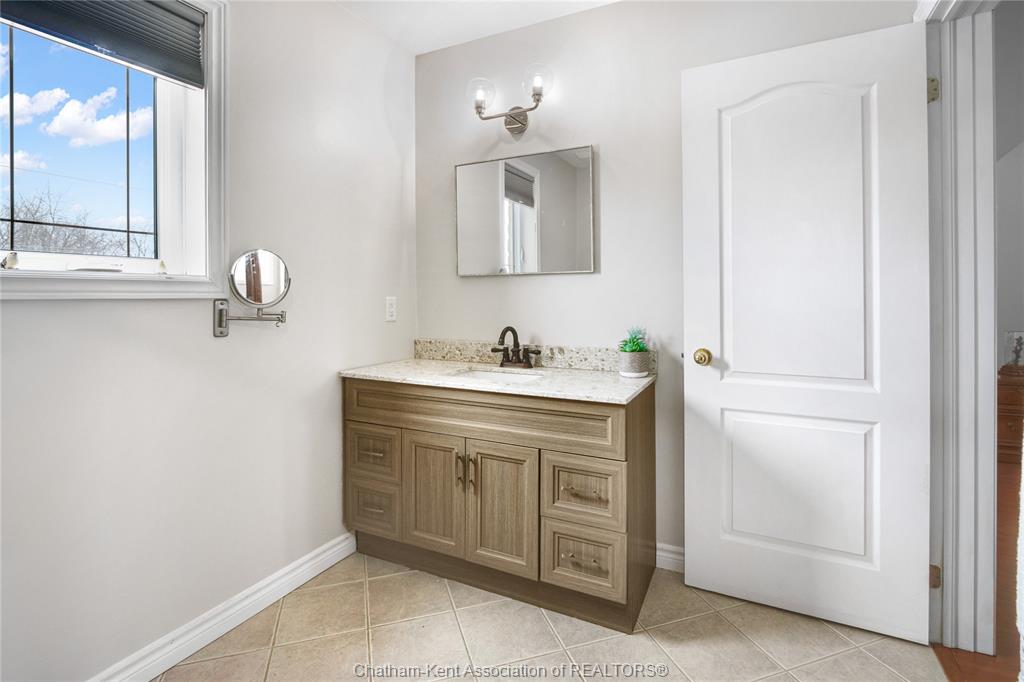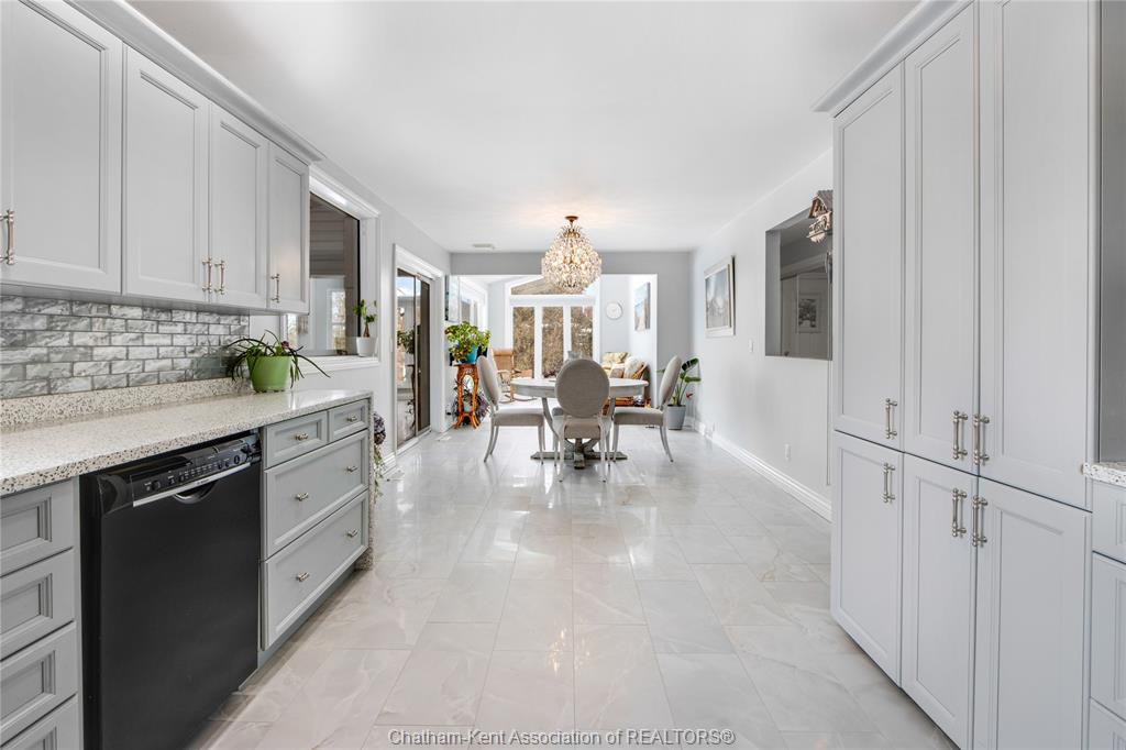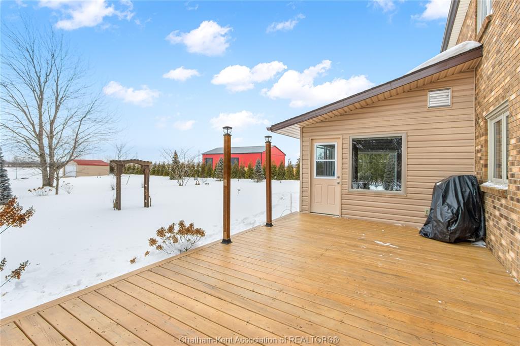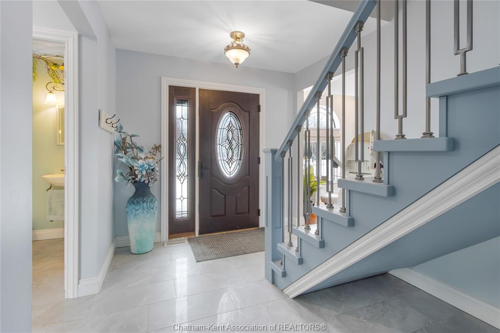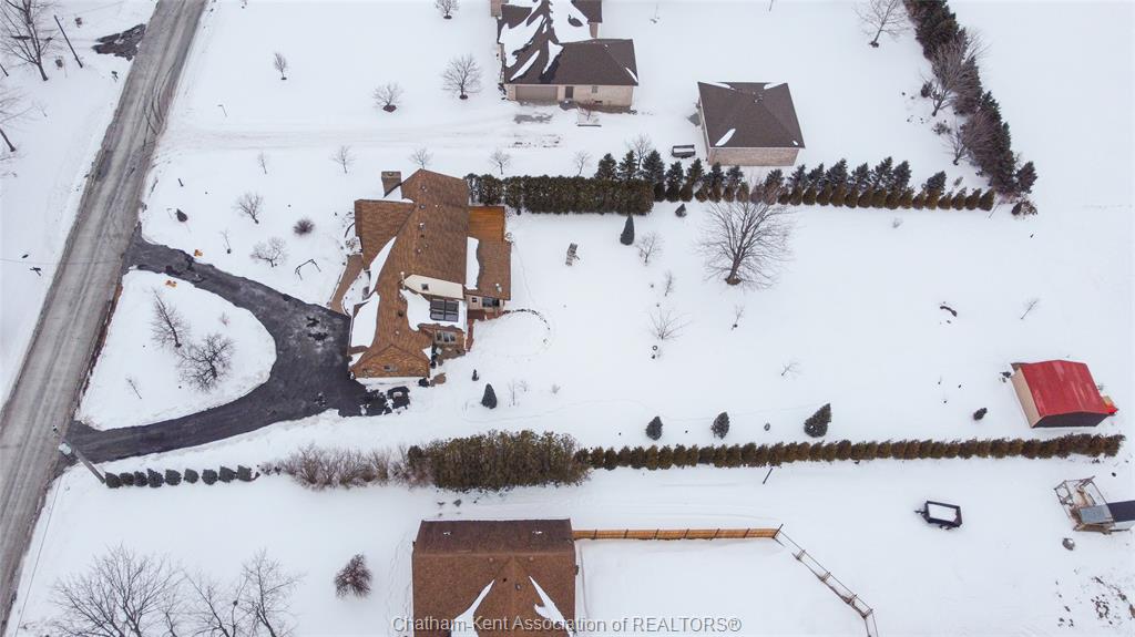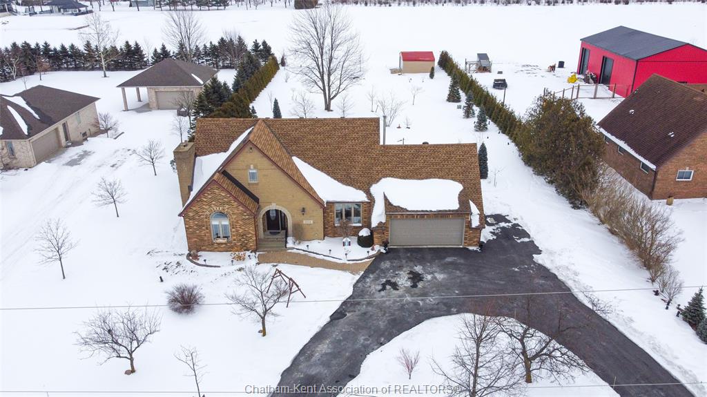 Situated on a large, private country lot with agricultural zoning at the rear, this unique two-storey home showcases true pride of ownership. Step inside and you’ll immediately notice the many upgrades, including Brazilian hardwood and porcelain tile throughout the main floor plus a sleek porcelain staircaise. A convenient office or main-floor bedroom is located just off the front entry. The heart of the home features a stylish kitchen with quartz countertops and a stunning waterfall edge that connects the dining area and sunroom featuring huge skylights. This bright, open space is filled with natural light, creating an incredible sun-soaked atmosphere throughout the day. The warmth continues into the 2nd sunroom where you’ll find ample windows, a hot tub and a cozy gas fireplace that is perfect for relaxing year-round. The living room also offers a gas fireplace and connects to a potential formal dining space, complete with a wet bar rough-in and patio doors leading to a large deck overlooking the deep treed backyard . Upstairs, you’ll find four bedrooms, including a primary suite with his-and-hers closets and a stylish ensuite featuring a walk-in marble-tiled shower. An adjacent bedroom offers direct access to the primary, making it ideal for a nursery, office, or impressive walk-in closet. Designed with convenience in mind, this home also includes a large walk in attic space for extra storage, a 21’ x 17’ shed, and a spacious horseshoe driveway leading to a double attached garage. Located just 10 minutes from Belle River, 25 minutes to Kingsville, and 30 minutes to downtown Windsor. Don’t miss this incredible opportunity—call today!